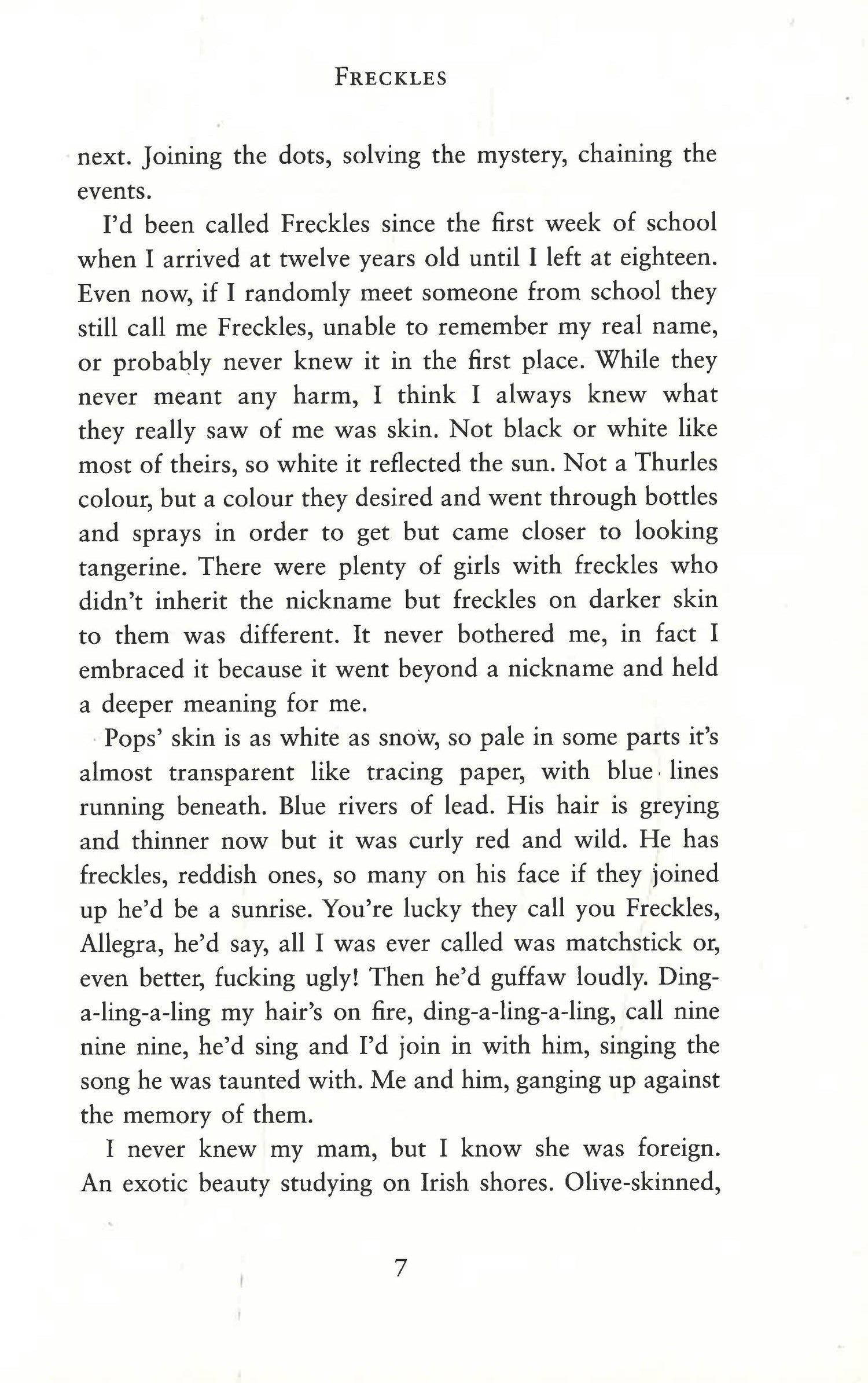 Readers are dotty about Freckles - discover this 5-star read: 'Wow' 'Heartwarming' 'Uplifting' 'Thought-provoking' 'One of those rare, special and unique heroines' 'A joy to read' Shortlisted for the 2021 An Post Irish Book Awards Sometimes the people who have the power to change your life are the ones who have been there all along... Like stars in the dark skies above the tiny island where she grew up, freckles scatter Allegra Bird's arms, a link to her beloved father. She's never known her mother. In a quest to find the one thing she's missing she begins a bold new life in Dublin. But she's left a lot behind. So when a stranger tells her she's the sum of five people - the five people she spends the most time with - she's suddenly no longer seeking one person. She's looking for five. And the truth lies in unexpected places... Life-affirming, beautiful and thought-provoking, Freckles is an unforgettable novel of five people, five chances and one woman's search for happiness. 'A heart-warming story about loneliness and connection' Daily Mail 'An endearing story of human frailty, connection and growth' Irish Independent 'A warm and bittersweet tale about finding yourself through family and friendship' Sunday Telegraph 'A moving story, absorbing characters, engaging writing, and as much of a page-turner as you'd expect from a bestselling novelist'' Irish Times 'Cecelia Ahern never follows the crowd and her latest novel is a delight - funny, thought-provoking and original' Mirror 'Warmly smart and astute story' Independent 'Ahern was born to write and her books born to be read by all' My Weekly 'Asking boldly what and who make us who we are, Freckles manages to team wit and wisdom harmoniously' Echo