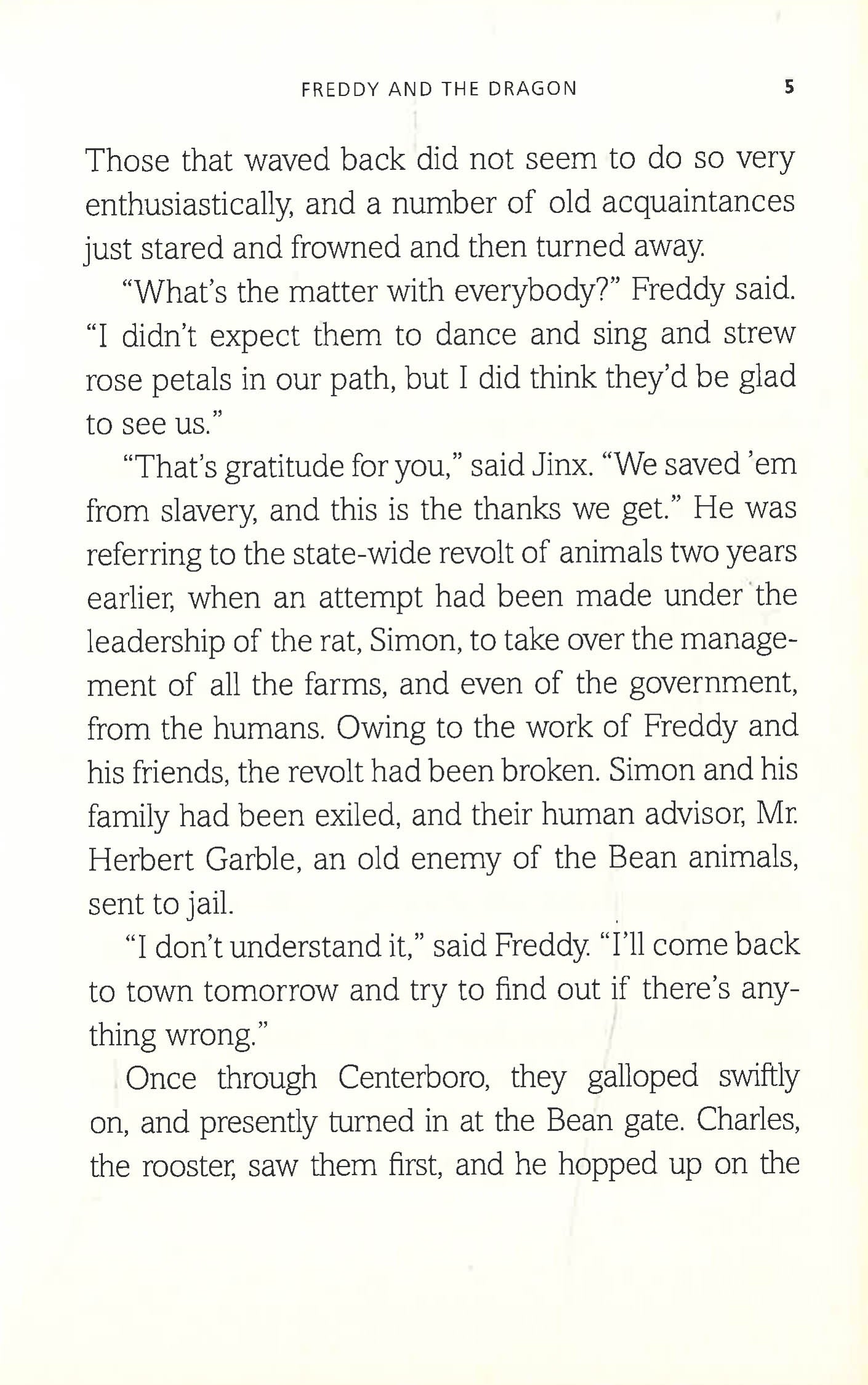 Someone is wreaking havoc in Centerboro, destroying gardens, stealing bicycles breaking windows and one of the culprits appears to be...a pig? With the townspeople suspecting Freddy, he'll need the help of all his friends, including a fearsome dragon, to clear his good name and restore the reputation of Bean Farm. This is vintage Freddy and the whole ensemble cast at their best. His adventures will thrill fans of all ages and entice new readers in this nostalgic classic, publishing in a charming new volume alongside Freddy the Detective!