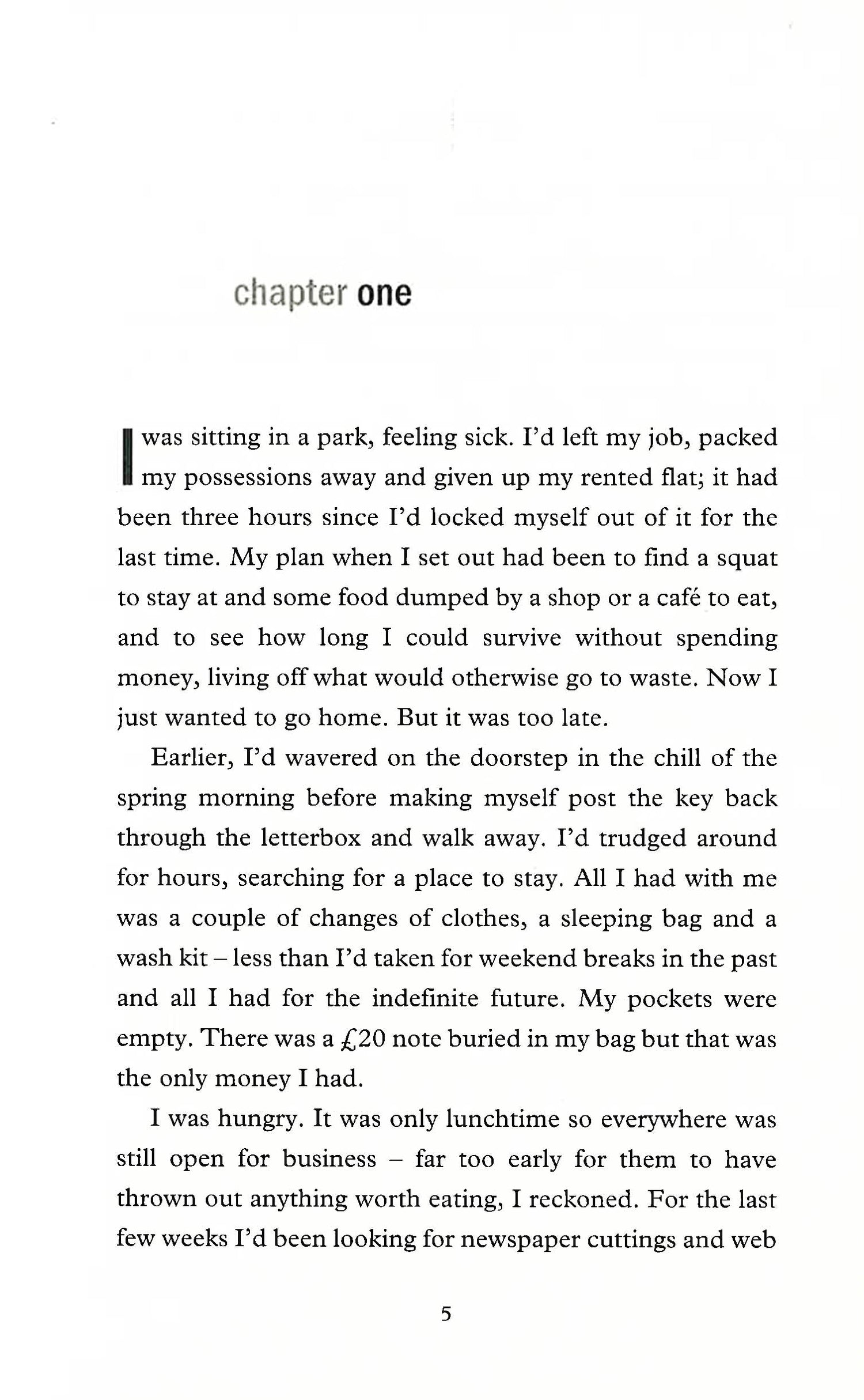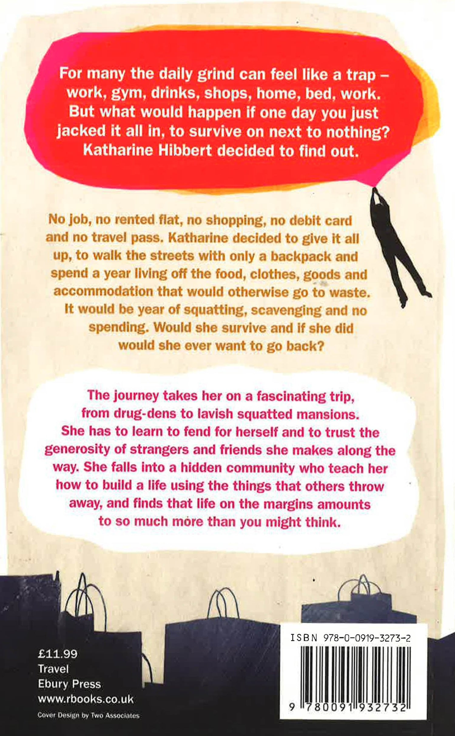 For many the daily grind can feel like a trap - work, gym, drinks, shops, home, bed, work. But what would happen if one day you just jacked it all in, to survive on next to nothing? Katharine Hibbert decided to find out. No job, no rented flat, no shopping, no debit card and no travel pass. Katharine decided to give it all up, to walk the streets with only a backpack and spend a year living off the food, clothes, other goods and accommodation that would otherwise go to waste. It would be year of squatting, scavenging and no spending. Would she survive and if she did would she ever want to go back? The journey takes her on a fascinating trip, from drug-dens to lavish squatted mansions. She has to learn to fend for herself and to trust the generosity of strangers and friends she makes along the way. She falls into a hidden community who teach her how to build a life using the things that others throw away, and finds that life on the margins amounts to so much more than you might think.
