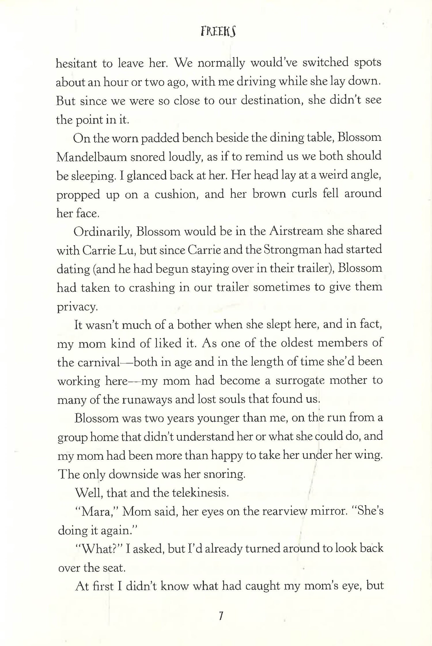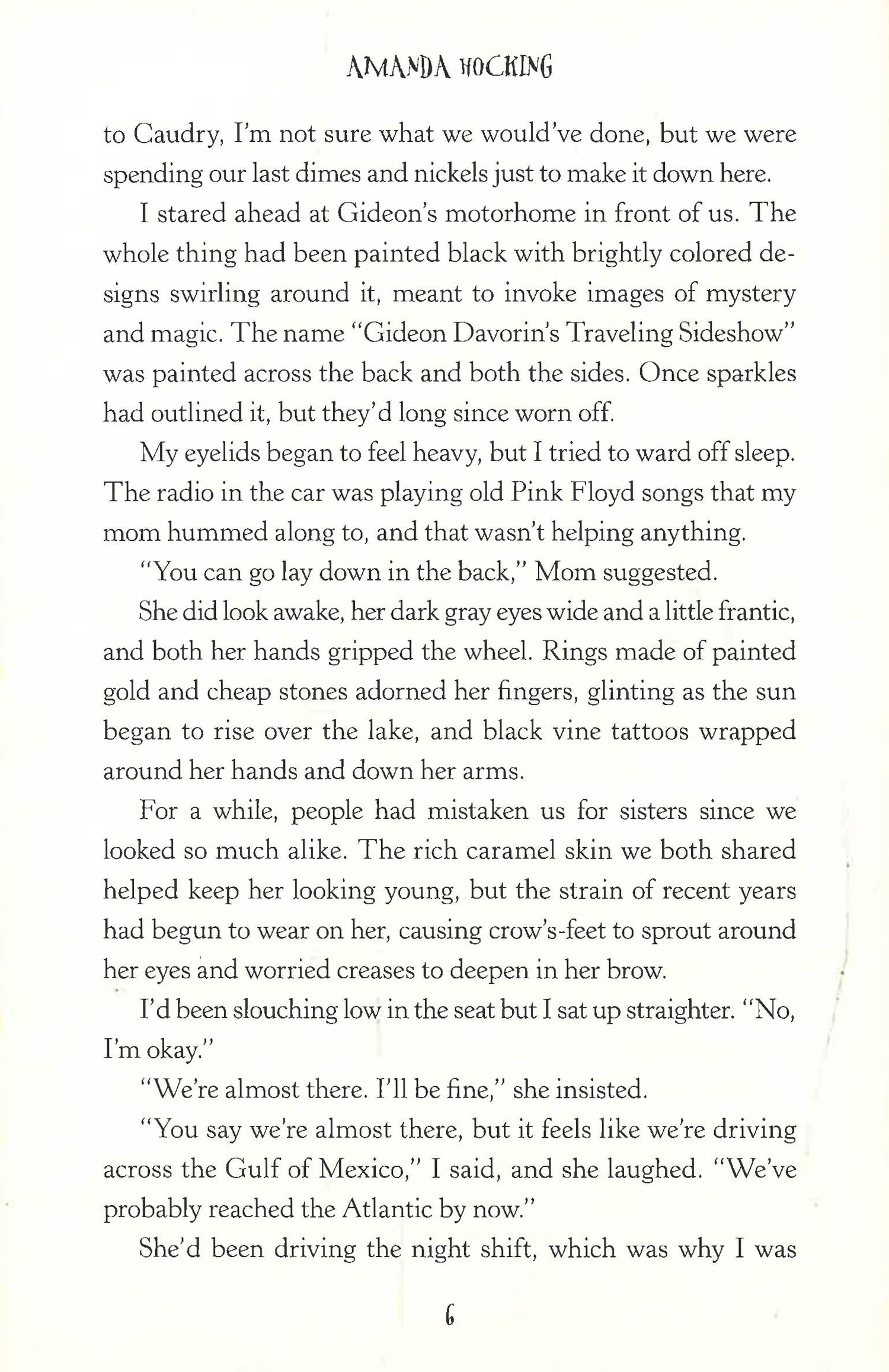 In a world of magical visions and pyrokinesis, Mara just wants to have a normal life. But is that possible? Mara has become used to the extraordinary. Roaming from place to place with Gideon Davorin’s Traveling Carnival, she longs for an ordinary life where no one has the ability to levitate or predict the future. She gets her chance when the struggling sideshow sets up camp in the small town of Caudry, and she meets a gorgeous local guy named Gabe. But before long, Mara realizes there’s a dark presence lurking in the town that’s threatening the lives of her friends. She has seven days to take control of a power she didn’t know she had in order to save everyone she cares about - and change the future forever. In the pages of Freeks, Amanda Hocking once again proves her ability to create amazing characters and enchanting worlds that will capture your imagination and never let go.