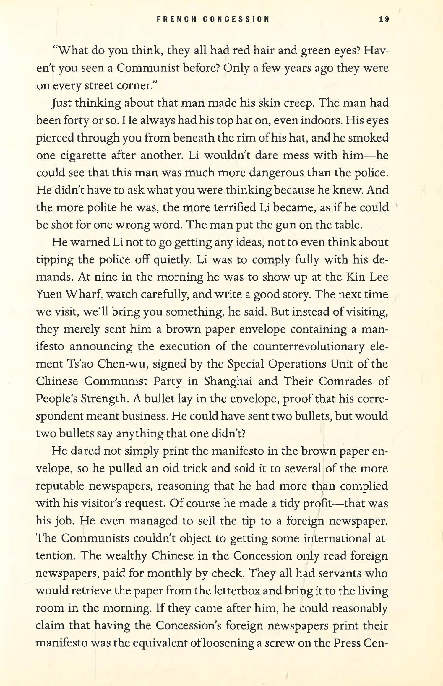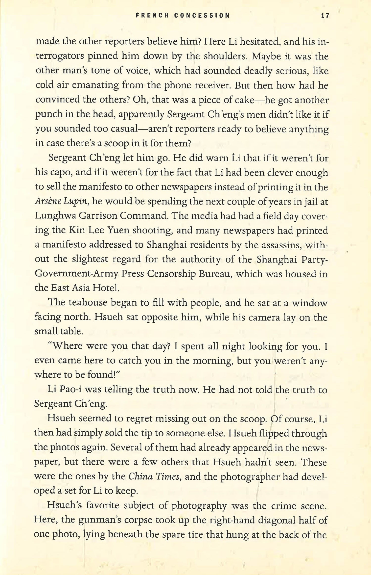 An acclaimed Chinese writer makes his English language debut with this heart-stopping literary noir, a richly atmospheric tale of espionage and international intrigue, set in Shanghai in 1931?an electrifying, decadent world of love, violence, and betrayal filled with femme fatales, criminals, revolutionaries, and spies. A boat from Hong Kong arrives in Shanghai harbor, carrying an important official in the Nationalist Party and his striking wife, Leng. Amid the raucous sound of firecrackers, gunshots ring out; an assassin has shot the official and then himself. Leng disappears in the ensuing chaos. Hseuh, a Franco-Chinese photographer aboard the same boat, became captivated by Leng?s beauty and unconcealed misery. Now, she is missing. But Hsueh is plagued by a mystery closer to home: he suspects his White Russian lover, Therese, is unfaithful. Why else would she disappear so often on their recent vacation? When he?s arrested for mysterious reasons in the French Concession and forced to become a police collaborator, he realizes that in the seamy, devious world of Shanghai, no one is who they appear to be. Coerced into spying for the authorities, Hseuh discovers that Therese is secretly an arms dealer, supplying Shanghai?s gangs with weapons. His investigation of Therese eventually leads him back to Leng, a loyal revolutionary with ties to a menacing new gang, led by a charismatic Communist whose acts of violence and terrorism threaten the entire country. His aptitude for espionage draws Hseuh into a dark underworld of mobsters, smugglers, anarchists, and assassins. Torn between Therese and Leng, he vows to protect them both. As the web of intrigue tightens around him, Hsueh plays a dangerous game, hoping to stay alive. *This book may have reminder mark*