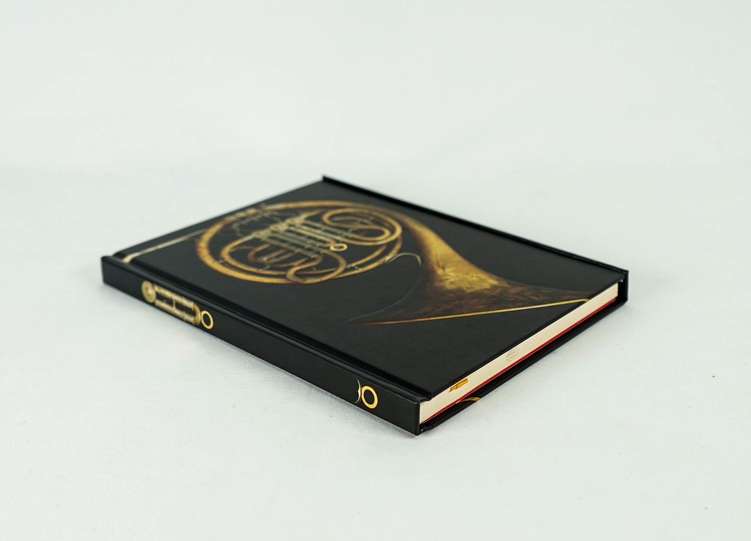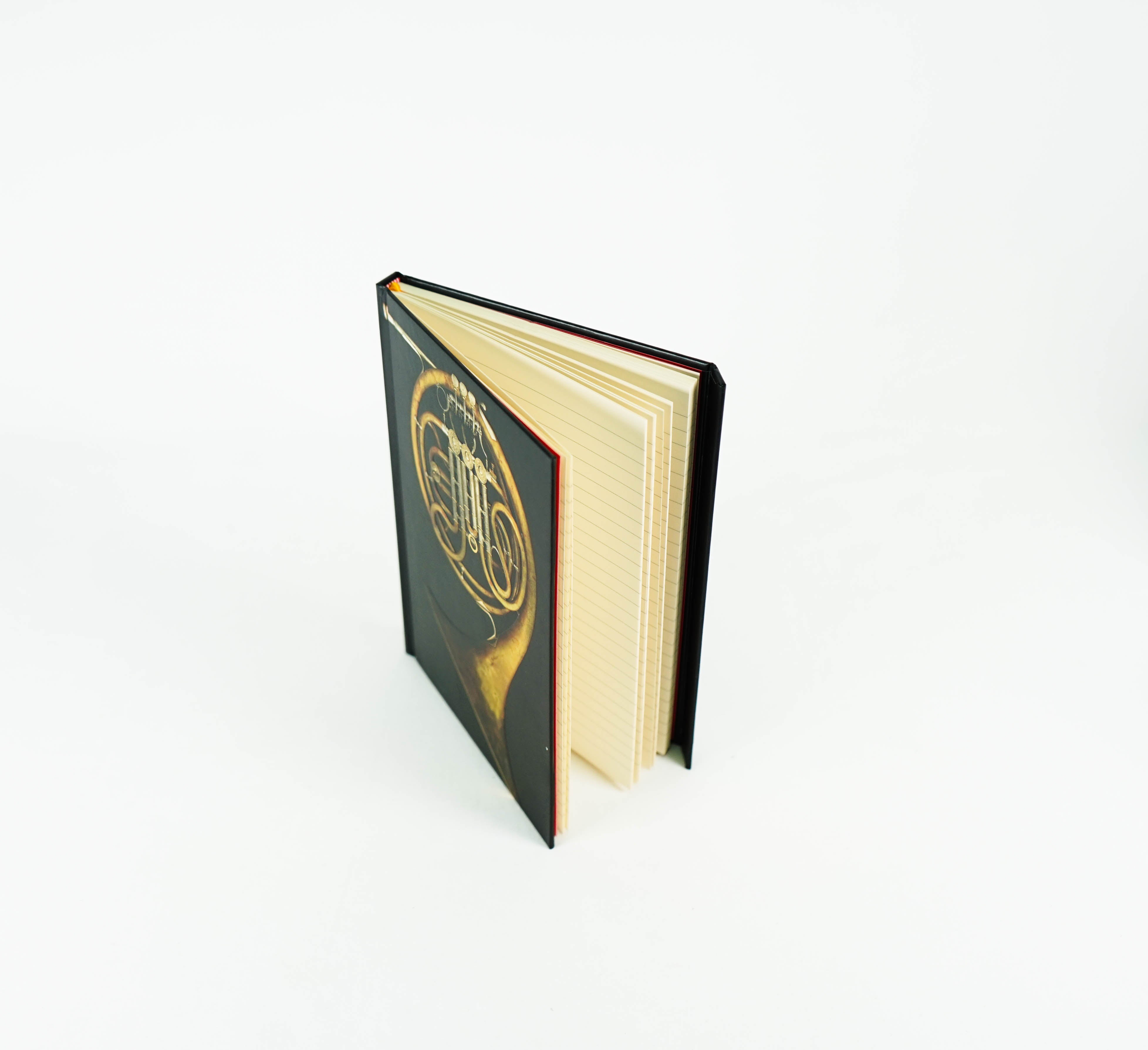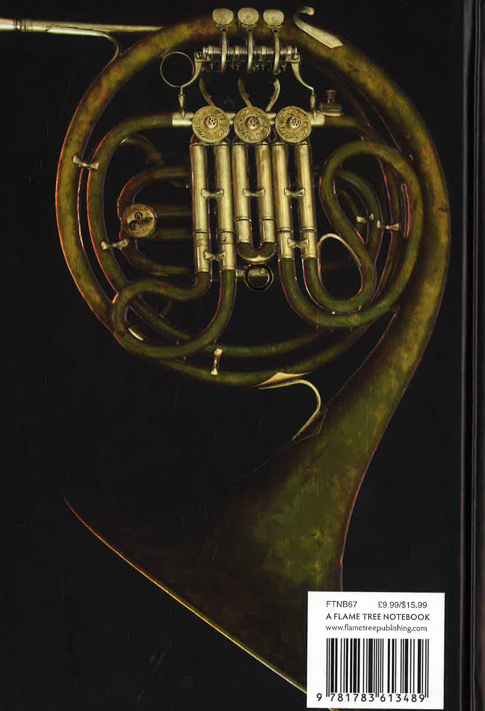 Part of a series of exciting and luxurious Flame Tree Notebooks. Combining high-quality production with magnificent fine art, the covers are printed on foil in five colours, embossed then foil stamped. And they're powerfully practical: a pocket at the back for receipts and scraps, two bookmarks and a solid magnetic side flap. These are perfect for personal use and make a dazzling gift. This example features a beautiful french horn.