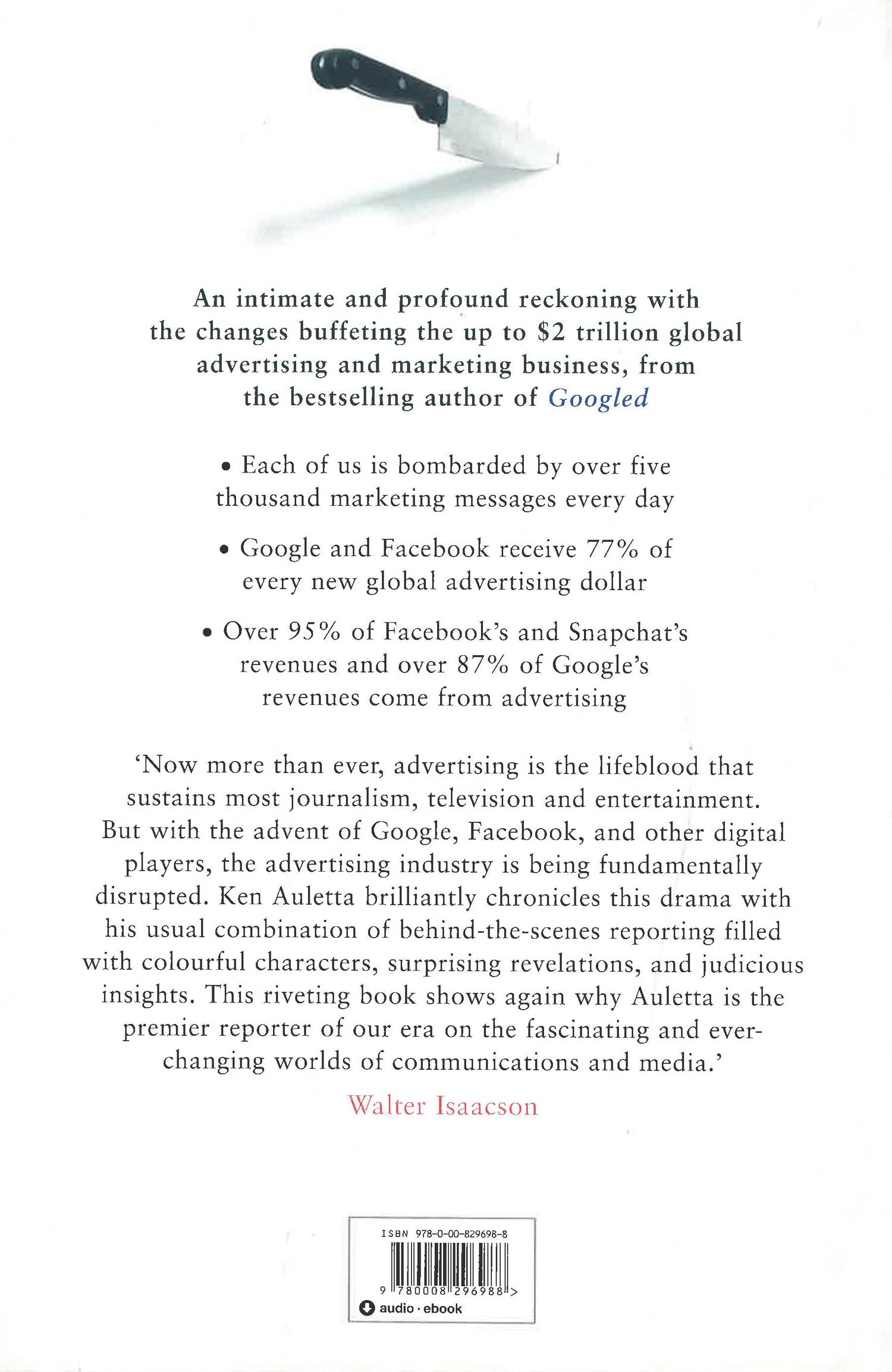 An intimate and profound reckoning with the changes buffeting the $2 trillion global advertising and marketing business from the perspective of its most powerful players, by the bestselling author of Googled Advertising and marketing touches on every corner of our lives, and is the invisible fuel powering almost all media. Complain about it though we might, without it the world would be a darker place. And of all the industries wracked by change in the digital age, few have been turned on its head as dramatically as this one has. We are a long way from the days of Don Draper; as Mad Men is turned into Math Men (and women-though too few), as an instinctual art is transformed into a science, the old lions and their kingdoms are feeling real fear, however bravely they might roar. Frenemies is Ken Auletta's reckoning with an industry under existential assault. He enters the rooms of the ad world's most important players, some of them business partners, some adversaries, many "frenemies," a term whose ubiquitous use in this industry reveals the level of anxiety, as former allies become competitors, and accusations of kickbacks and corruption swirl. We meet the old guard, including Sir Martin Sorrell, the legendary head of WPP, the world's largest ad agency holding company; while others play nice with Facebook and Google, he rants, some say Lear-like, out on the heath. There is Irwin Gotlieb, maestro of the media agency GroupM, the most powerful media agency, but like all media agencies it is staring into the headlights as ad buying is more and more done by machine in the age of Oracle and IBM. We see the world from the vantage of its new powers, like Carolyn Everson, Facebook's head of Sales, and other brash and scrappy creatives who are driving change, as millennials and others who disdain ads as an interruption employ technology to zap them. We also peer into the future, looking at what is replacing traditional advertising. And throughout we follow the industry's peerless matchmaker, Michael Kassan, whose company, MediaLink, connects all these players together, serving as the industry's foremost power broker, a position which feasts on times of fear and change. Frenemies is essential reading, not simply because of what it says about this world, but because of the potential consequences: the survival of media as we know it depends on the money generated by advertising and marketing-revenue that is in peril in the face of technological changes and the fraying trust between the industry's key players.