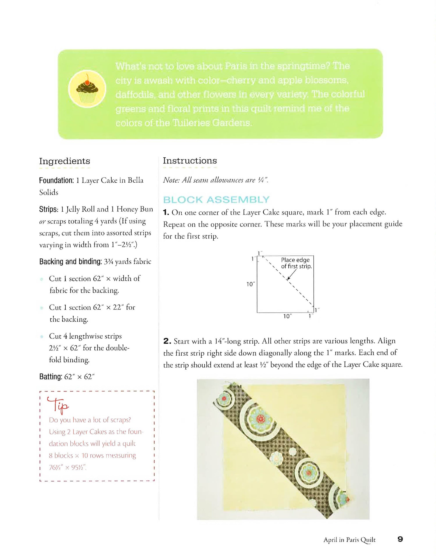 A collection of 16 projects, including quilts, totes, organizers, and more. This title includes a delightful collection of 16 projects - including quilts, totes, organizers, and more - from your favourite Moda designers. In this deliciously inspiring book, 15 popular project designers from the Moda Bake Shop serve it up in style! Their recipes are simple: start with a mix of Moda pre-cuts, sprinkle in some eye-catching details, and then top it all off with creative garnishes. Easy-to-follow instructions, vibrant photographs, and a variety of clever tips make these projects a snap to complete!