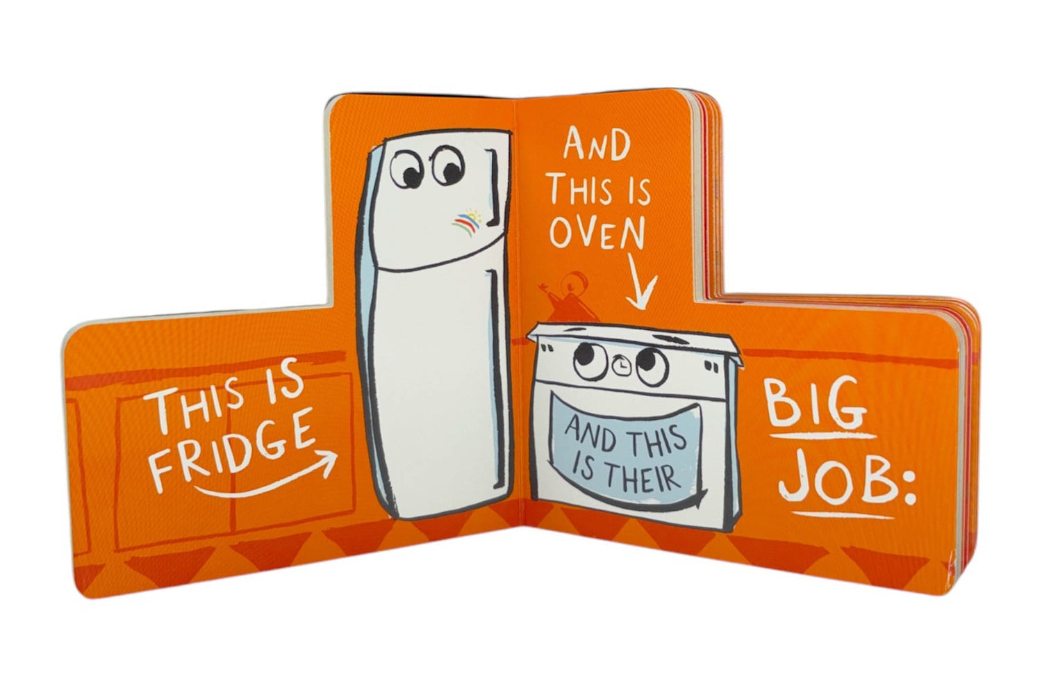 With vibrant artwork and clever humor, this original board book series is a celebration of childhood curiosity and the most captivating topic of all--household appliances! In Fridge & Oven's Big Job, follow along as these amazing appliances show us how delicious cookies get made.