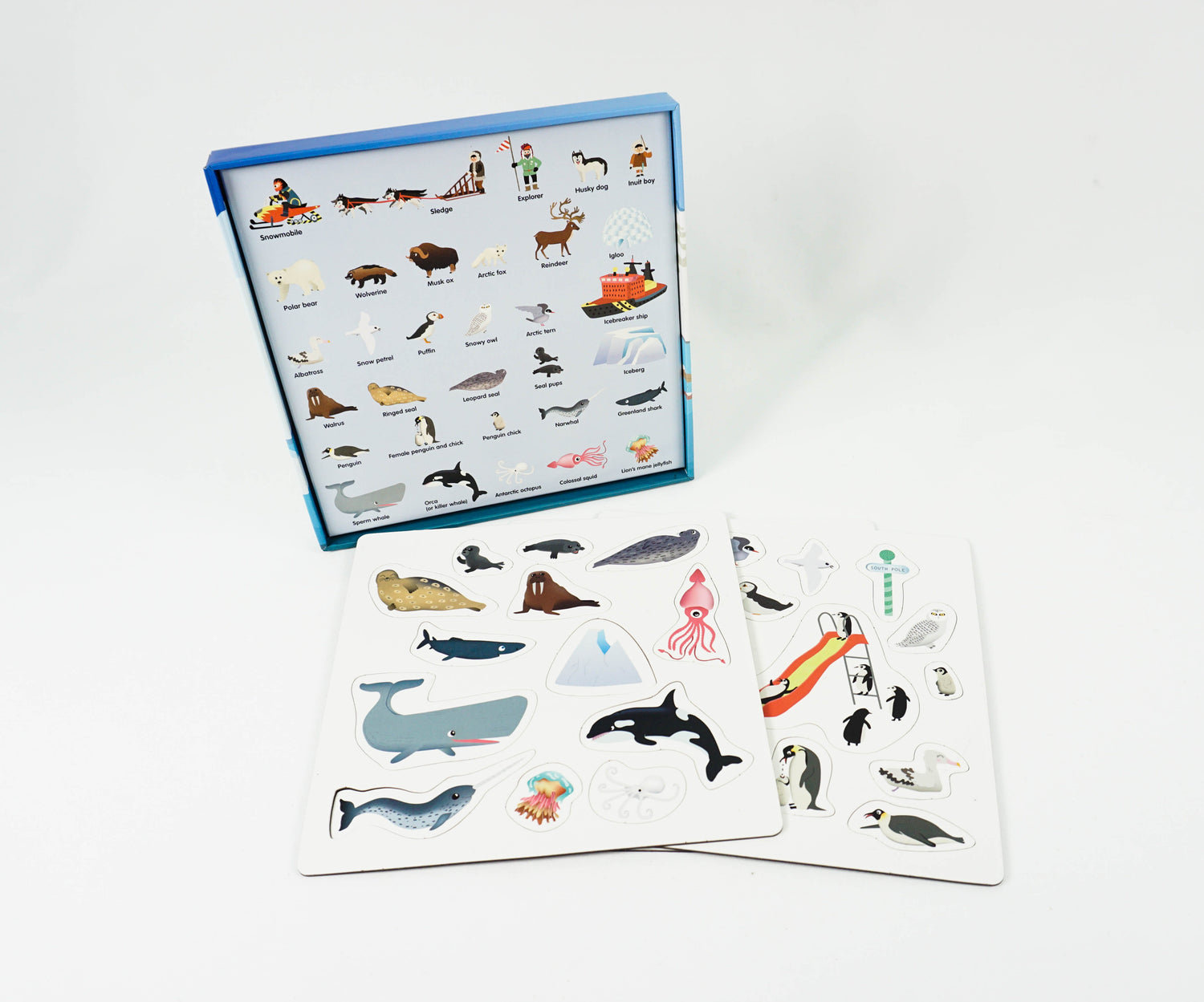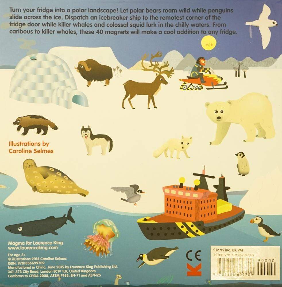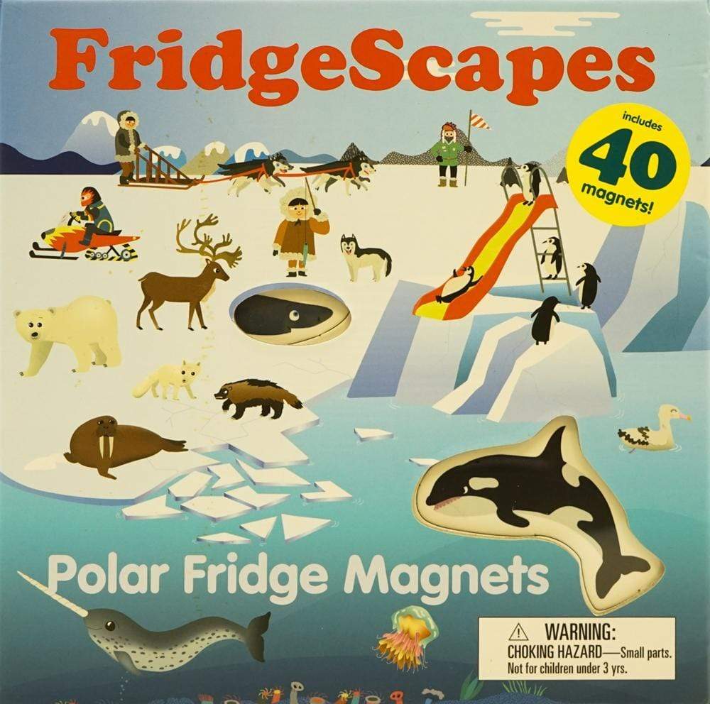 Turn your fridge into a polar landscape! Let polar bears roam wild while penguins slide across the ice. Dispatch an icebreaker ship to the remotest corner of the fridge door while killer whales and colossal squid lurk in the chilly waters. From caribous to killer whales, these 40 magnets will make a cool addition to any fridge.