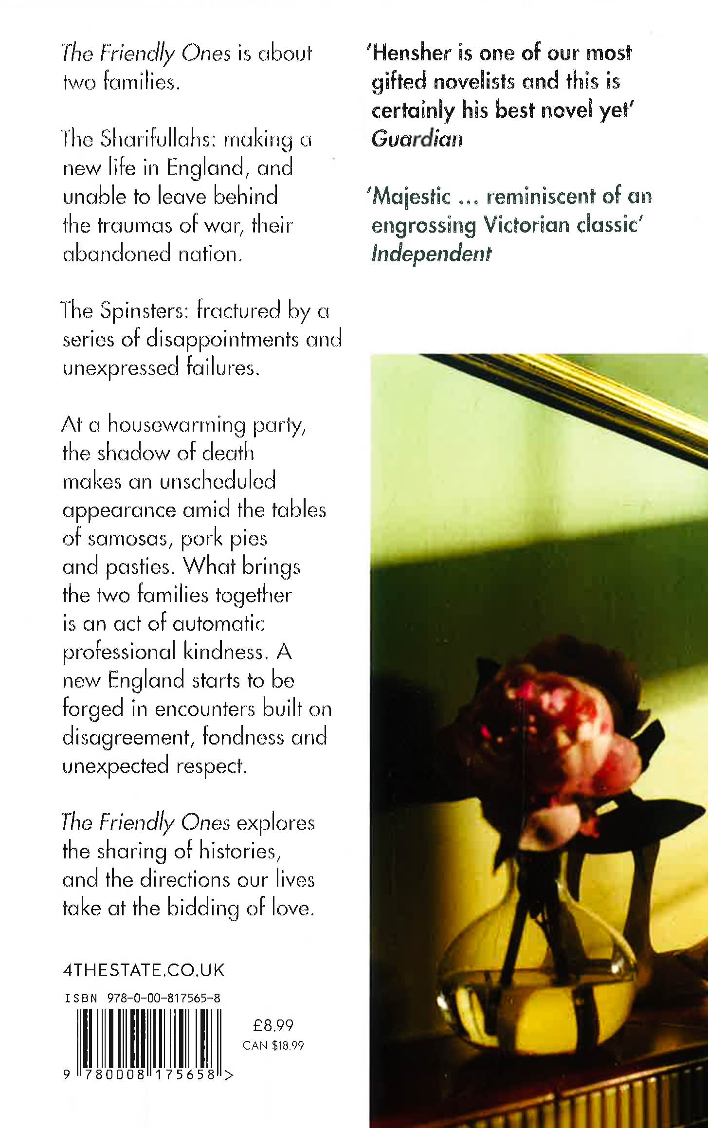 Its the book you should give someone who thinks they dont like novels Here is surely a future prizewinner that is easy to read and impossible to forget Melissa Katsoulis, The TimesThe things history will do at the bidding of loveOn a warm Sunday afternoon, Nazia and Sharif are preparing for a family barbecue. They are in the house in Sheffield that will do for the rest of their lives. In the garden next door is a retired doctor, whose four children have long since left home. When the shadow of death passes over Nazia and Sharifs party, Doctor Spinsters actions are going to bring the two families together, for decades to come.The Friendly Ones is about two families. In it, people with very different histories can fit together, and redeem each other. One is a large and loosely connected family who have come to England from the subcontinent in fits and starts, brought to England by education, and economic possibilities. Or driven away from their native country by war, murder, crime and brutal oppression things their new neighbours know nothing about. At the heart of their story is betrayal and public shame. The secret wound that overshadows the Spinsters, their neighbours next door, is of a different kind: Leo, the eldest son, running away from Oxford University aged eighteen. How do you put these things right, in England, now Spanning decades and with a big and beautifully drawn cast of characters all making their different ways towards lives that make sense, The Friendly Ones, Philip Henshers moving and timely new novel, shows what a nation is made of; how the legacies of our history can be mastered by the decision to know something about people who are not like us.