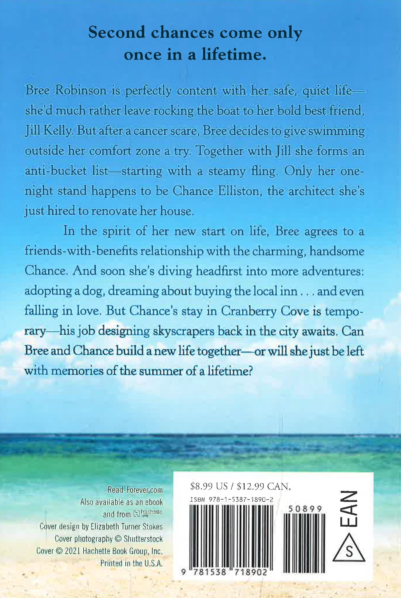 In the spirit of her new start on life, Bree agrees to a friends-with-benefits relationship with the charming, handsome Chance. And soon she’s diving headfirst into more adventures: adopting a dog, dreaming about buying the local inn . . . and even falling in love. But Chance’s stay in Cranberry Cove is temporary—his job designing skyscrapers back in the city awaits. Can Bree and Chance build a new life together—or will she just be left with memories of the summer of a lifetime?