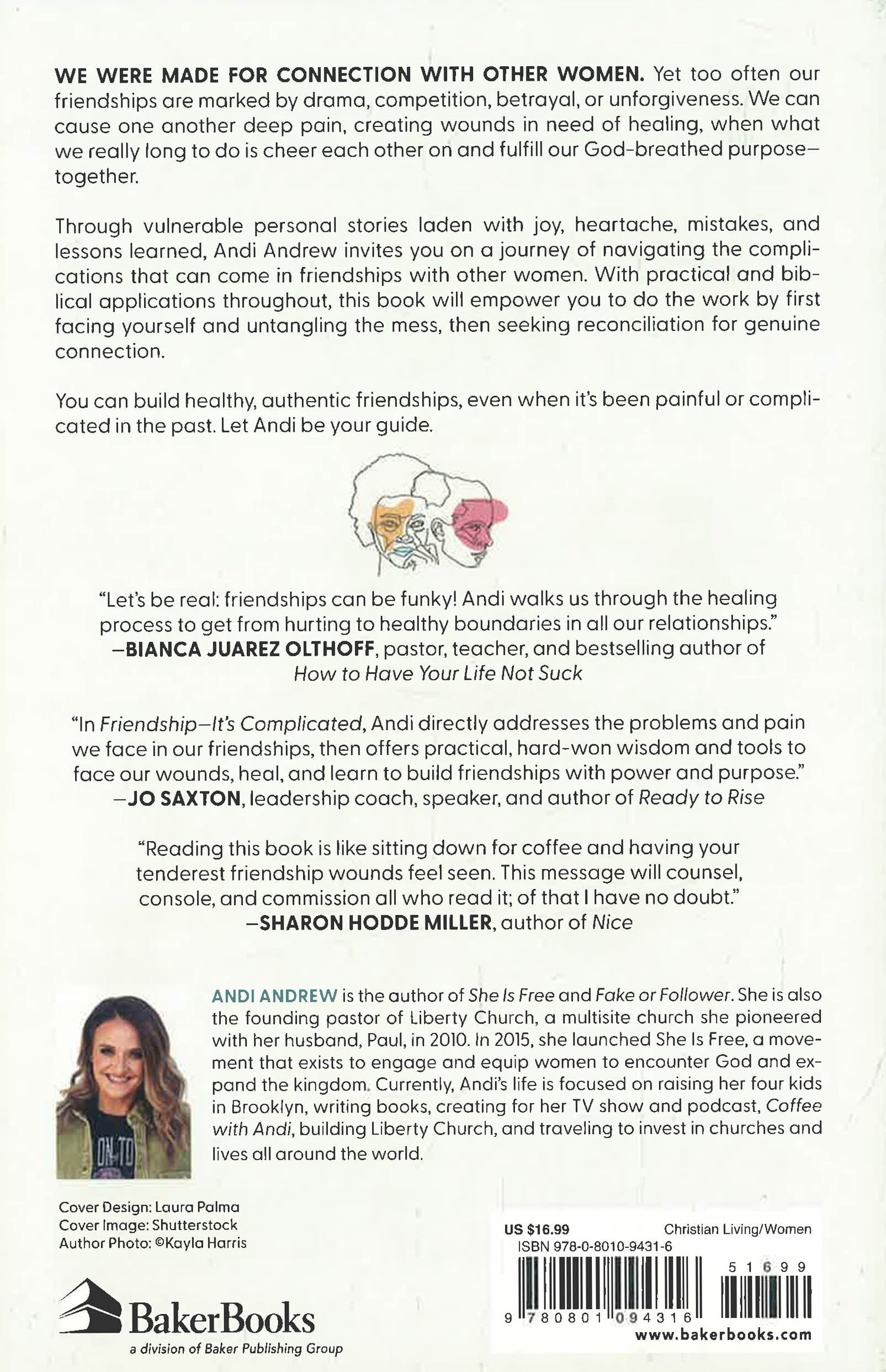 Through vulnerable personal stories laden with joy, heartache, mistakes, and lessons learned, Andi invites you on a journey of navigating the complications that can come in friendships with other women. With practical and biblical applications throughout, this book will empower you to do the work by first facing yourself and untangling the mess, then seeking reconciliation for genuine connection, and building authentic friendships, even when it's been painful or complicated in the past.