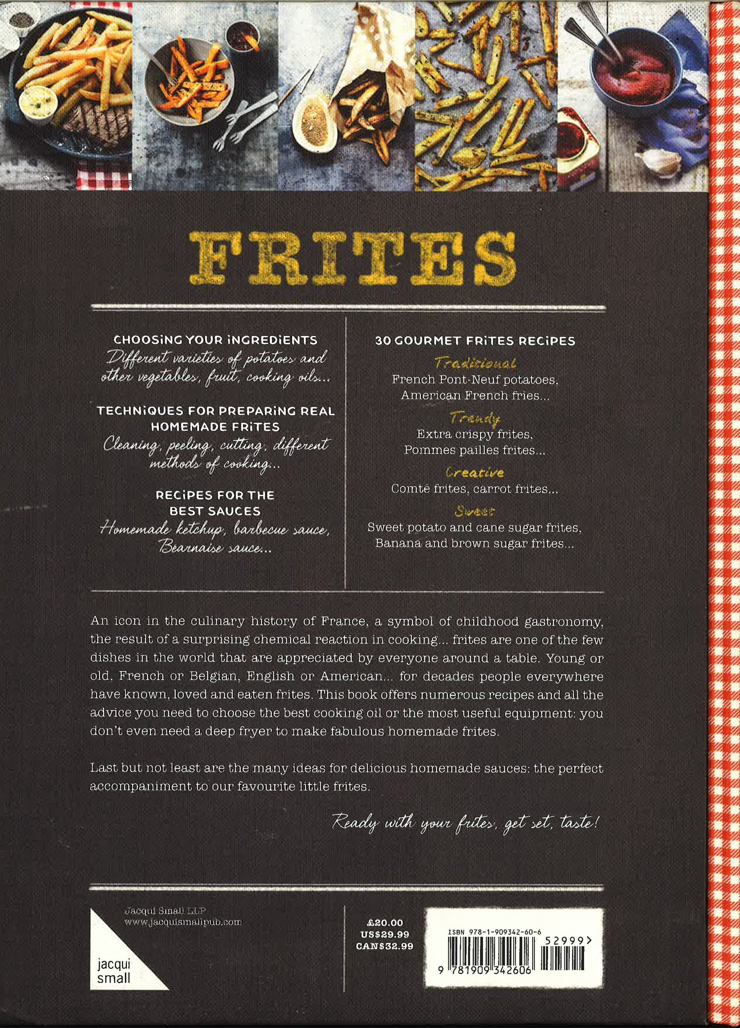 The humble frite is an iconic, comfort food that never fails to bring pleasure to your plate. From childhood memories of fish and chips , moules and frites or burger and fries, this book embraces many different cooking styles and permutations of ingredients, from polenta and asparagus to the classic French frites Pont-Neufs or US-style skinny fries. Large or small, fat or thin, peeled or with skins on, French, Belgian, British or American, everyone has their own favourite frites/dip combination