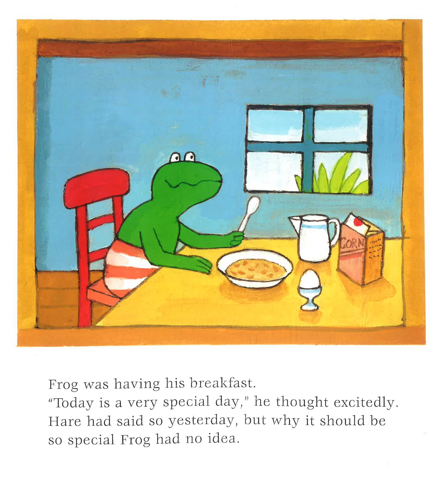 Frog is excited - Hare has promised that today will be a very special day. But when Frog decides to find out why, none of his friends seem to know. Has Hare been playing a trick on him? No - Frog has forgotten his own birthday! Luckily his friends haven't - they're throwing him a surprise party to celebrate his special day.