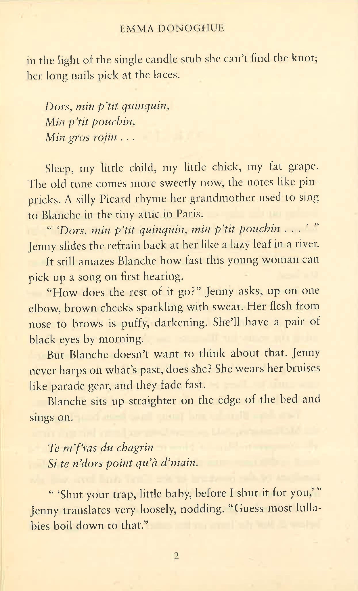 San Francisco, 1876: a stifling heat wave and smallpox epidemic have engulfed the City. Deep in the streets of Chinatown live three former stars of the Parisian circus: Blanche, now an exotic dancer at the House of Mirrors, her lover Arthur and his companion Ernest. When an eccentric outsider joins their little circle, secrets unravel, changing everything - and leaving one of them dead. Inspired by true events, Frog Music, by Emma Donoghue, author of the award-winning Room, is an evocative novel of intrigue and murder: elegant, erotic and witty.