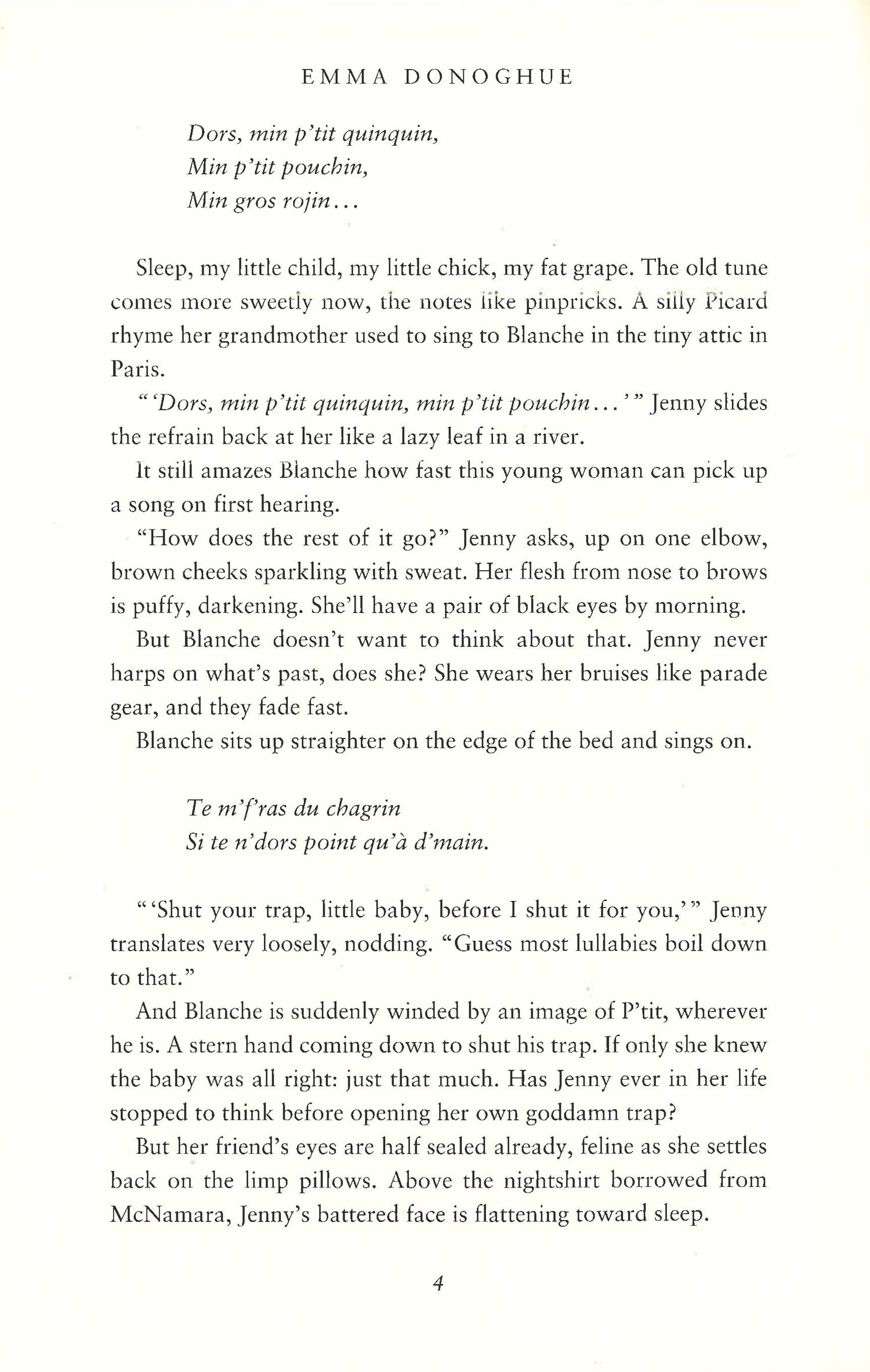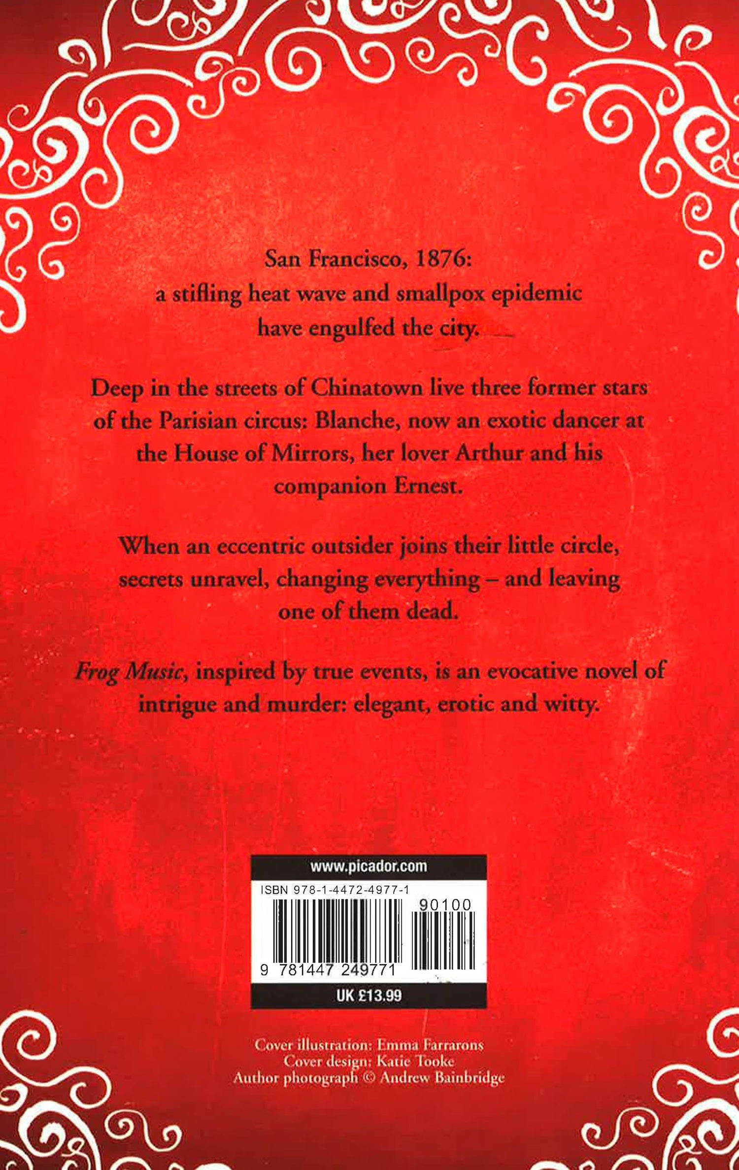 San Francisco, 1876: a stifling heat wave and smallpox epidemic have engulfed the City. Deep in the streets of Chinatown live three former stars of the Parisian circus: Blanche, now an exotic dancer at the House of Mirrors, her lover Arthur and his companion Ernest. When an eccentric outsider joins their little circle, secrets unravel, changing everything - and leaving one of them dead. Inspired by true events, Frog Music, by Emma Donoghue, author of the award-winning Room, is an evocative novel of intrigue and murder: elegant, erotic and witty.