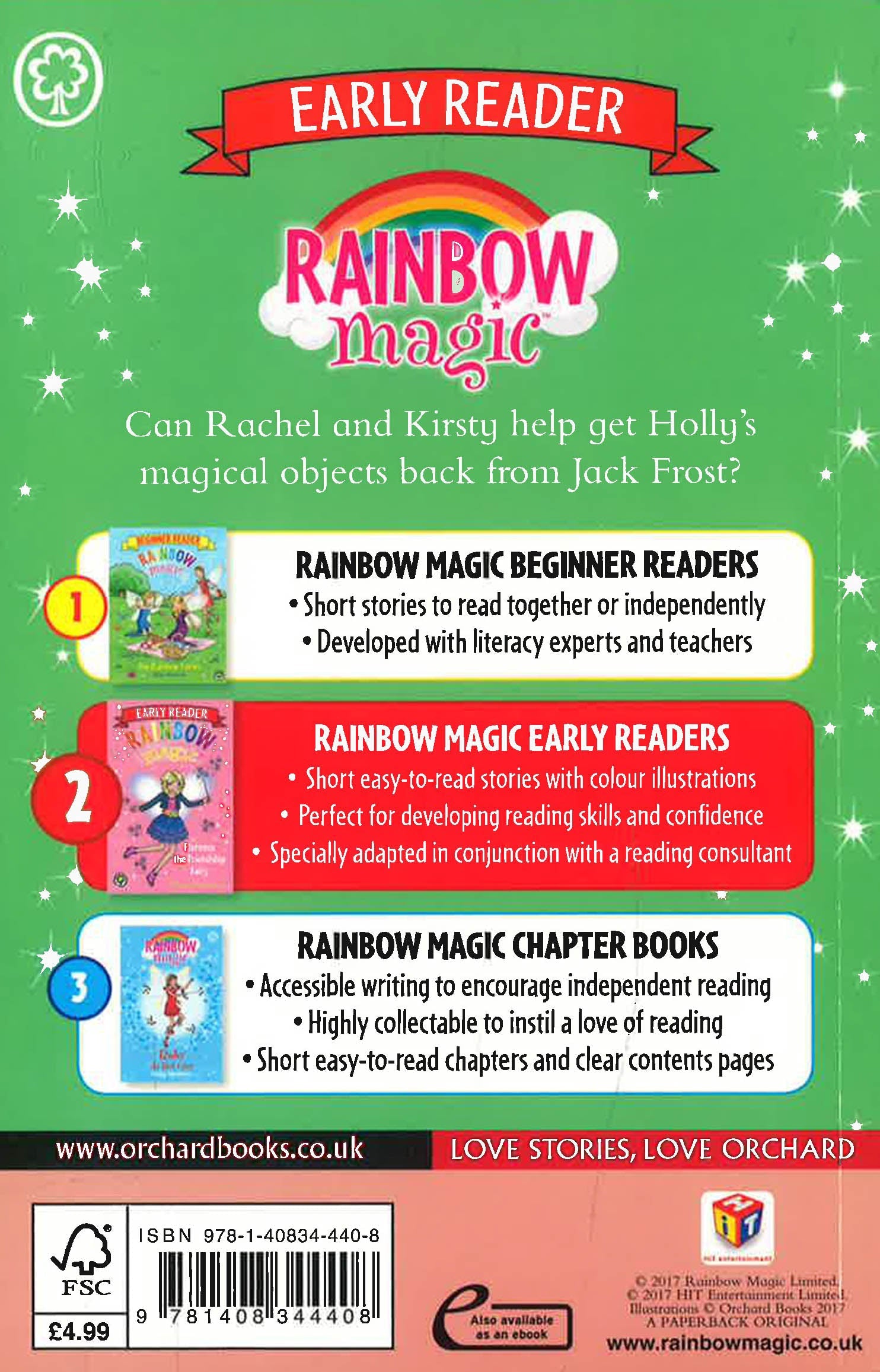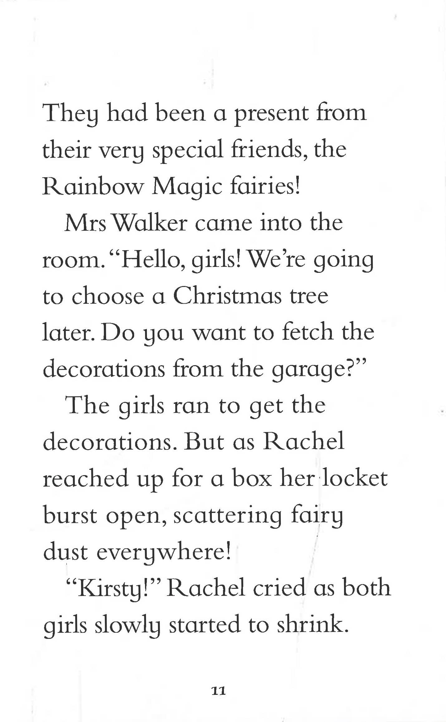 The King and Queen of Fairyland are all in a fluster. Jack Frost is up to his old tricks and has kidnapped the Christmas elves. Without the elves to make the presents and decorate the trees, there won't be any Christmas this year. Can Rachel and Kirsty save the day, with a little help from Holly the Christmas Fairy?