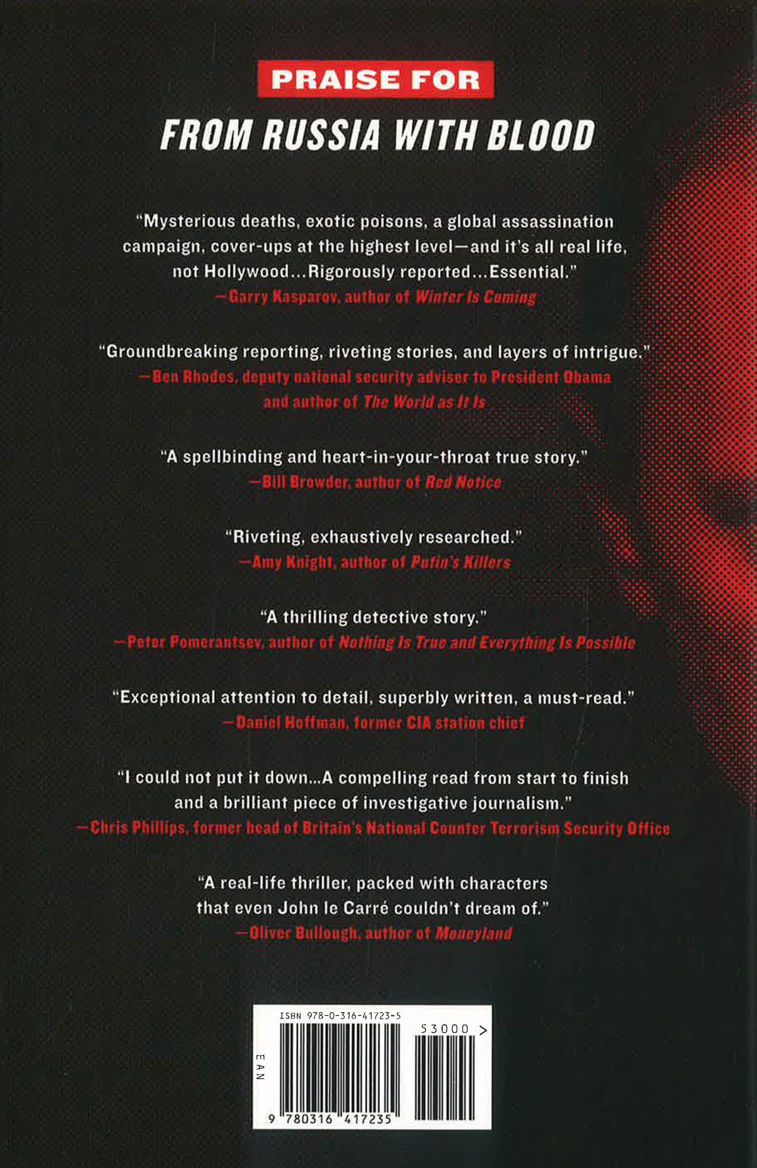 Unflinchingly documenting the growing web of death on British and American soil, Heidi Blake bravely exposes the Kremlin's assassination campaign as part of Putin's ruthless pursuit of global dominance -- and reveals why Western governments have failed to stop the bloodshed. The unforgettable story that emerges whisks us from London's high-end night clubs to Miami's million-dollar hideouts ultimately renders a bone-chilling portrait of money, betrayal, and murder, written with the pace and propulsive power of a thriller.