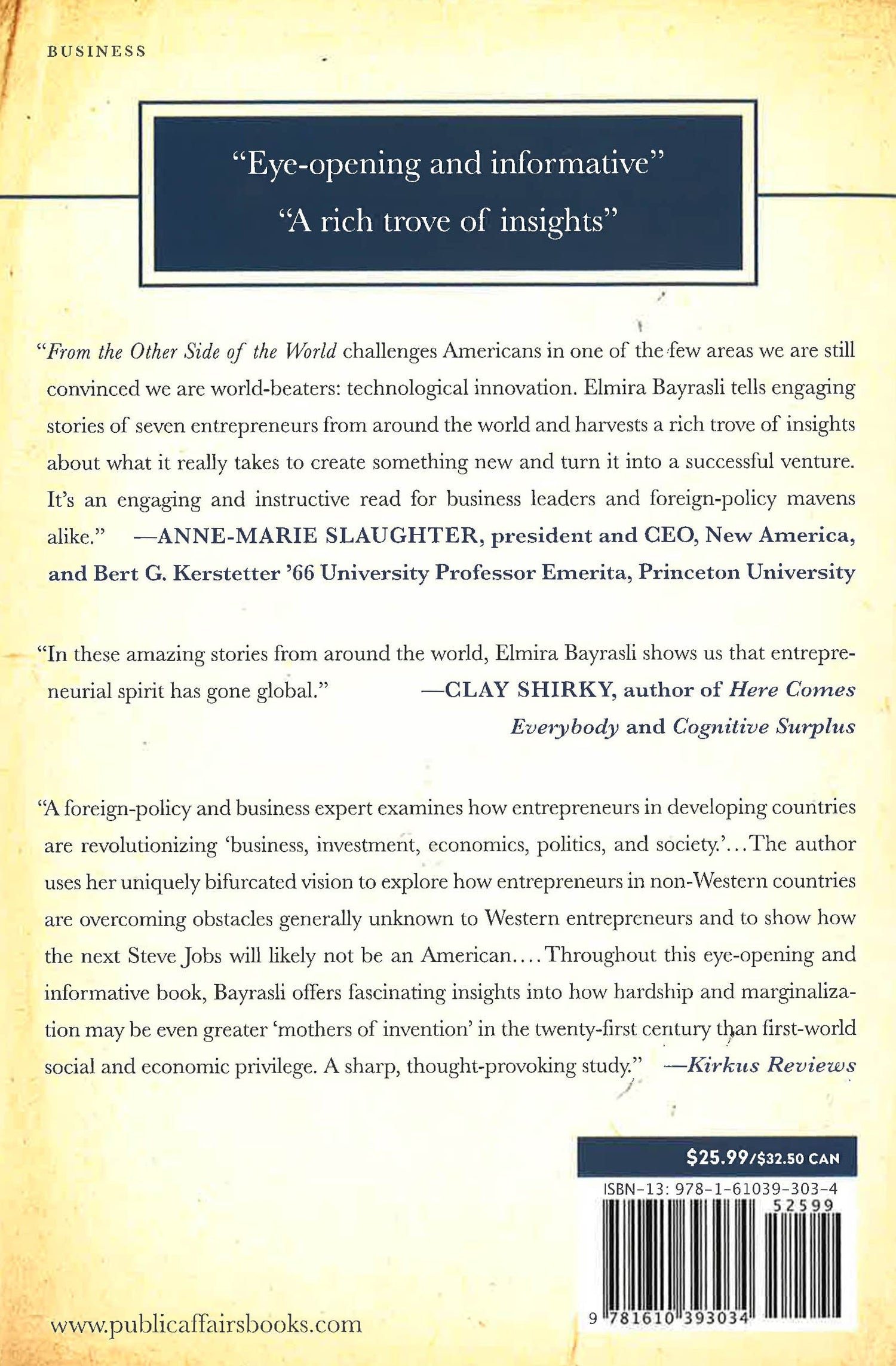 Why the next Steve Jobs is just as likely to come from Lagos, Acapulco, Lahore, or Mumbai as from Silicon Valley.Elmira Bayrasli's colourful narrative brings readers inside the world of high-growth entrepreneurs as they overcome vexing obstacles to build businesses that create jobs and economic growth and,perhaps most important,shift mindsets. Here are the people who personify the transformative force of entrepreneurship from parts of the world that will be the source of the overwhelming amount of economic growth over the next twenty-five years.Bulent Celebi applies creative genius as he searches for the talent needed to roll out a wireless mesh technology, convincing skeptics from Europe and America that a breakthrough like this could be developed in Turkey. Tayo Oviosu grapples with the poor infrastructure and political chaos to bring financial services to the vast majority of Nigerians who lack access to banks and other financial institutions.Bayrasli takes us on an extraordinary journey, with fascinating eyewitness accounts of courage, endurance, and ingenuity, as people in some of the world's most challenging societies build globally competitive products and services that garner international praise and investment. As these extraordinary entrepreneurs create new economic possibilities in their countries, it becomes clear that the same game-changing creative development that happened in Silicon Valley in the 1960s is occurring right now in unexpected places on the other side of the world.