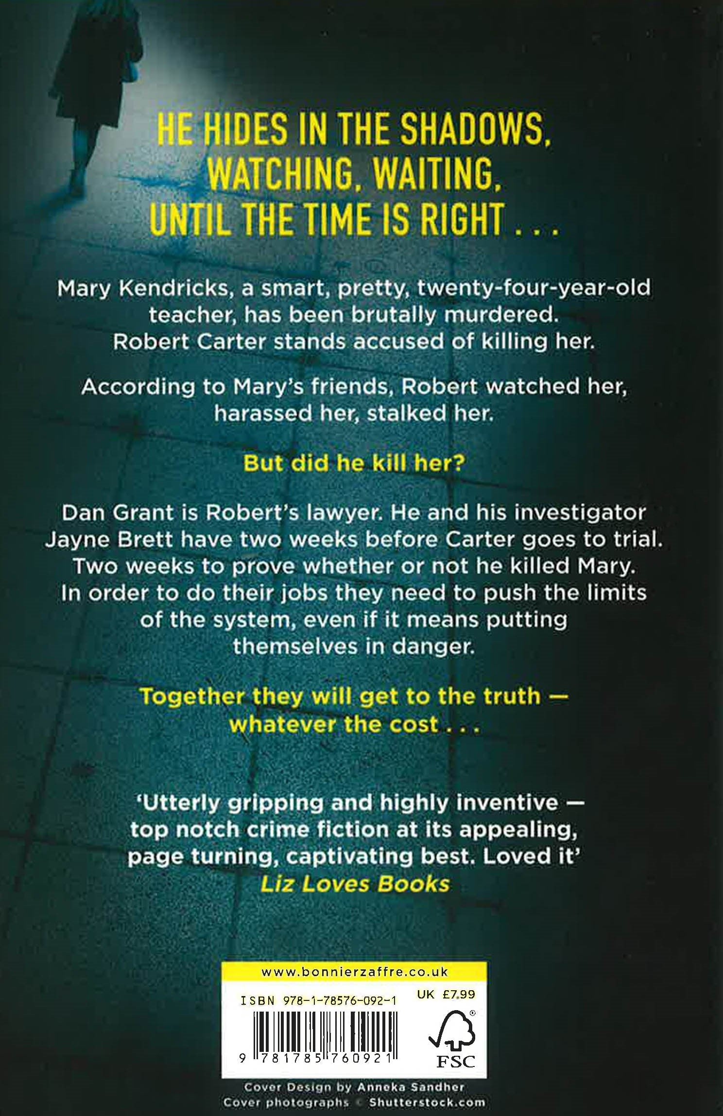 THE NEW SERIES FROM BESTSELLING AUTHOR NEIL WHITE. He hides in the shadows, watching, waiting, until the time is right . . . Mary Kendricks, a smart, pretty, twenty-four-year-old teacher, has been brutally murdered and Robert Carter is accused of killing her. When defence lawyer, Dan Grant inherits Carter's case only weeks before the trial starts, everyone expects him just to babysit it, but Dan's not that kind of lawyer. He'll follow the evidence - wherever it takes him. But as Dan and his investigator Jayne Brett look into the case, they discover that there is more to it than meets the eye. In order to do their jobs they need to push the limits of the system, even if it means putting themselves in danger. Together they will get to the truth - whatever the cost . . .