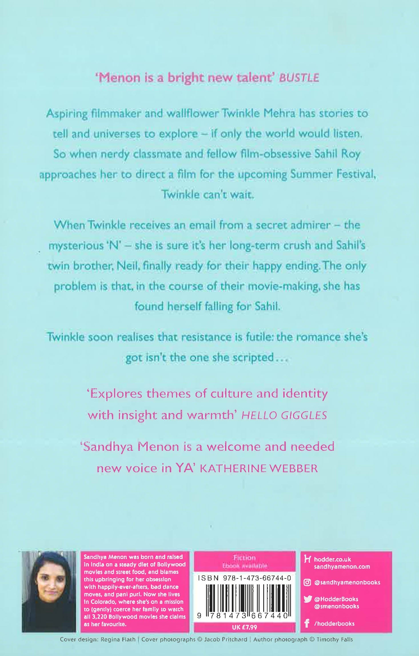 There's something irresistible about Sandhya Menon's novels - the romances are sweet and winning, the humor is cheerful and sly, and the families are warm and complicated' Stephanie Perkins__________________________________________Aspiring filmmaker and wallflower Twinkle has stories to tell - if only the world would listen. So when nerdy classmate and fellow film-obsessive Sahil approaches her to direct a film for the upcoming Summer Festival, Twinkle can't wait.The chance to showcase her artistic voice? Dream come true. The opportunity to get closer to longtime crush, Neil - aka Sahil's twin brother? Dream come even truer.When Twinkle receives an email from a secret admirer - the mysterious 'N' - she is sure it's Neil, finally ready for their happy ending. The only problem is that, in the course of their movie-making, she has found herself falling for Sahil - the wrong brother.Twinkle soon realises that resistance is futile: the romance she's got is not the one she scripted... But will it have a happy ever after anyway?__________________________________________Praise for Sandhya Menon and From Twinkle With Love:'The hug your heart most certainly needs' Book Riot'Funny and sweet' Buzzfeed'Sandhya Menon is a welcome and needed voice in YA' Katherine Webber
