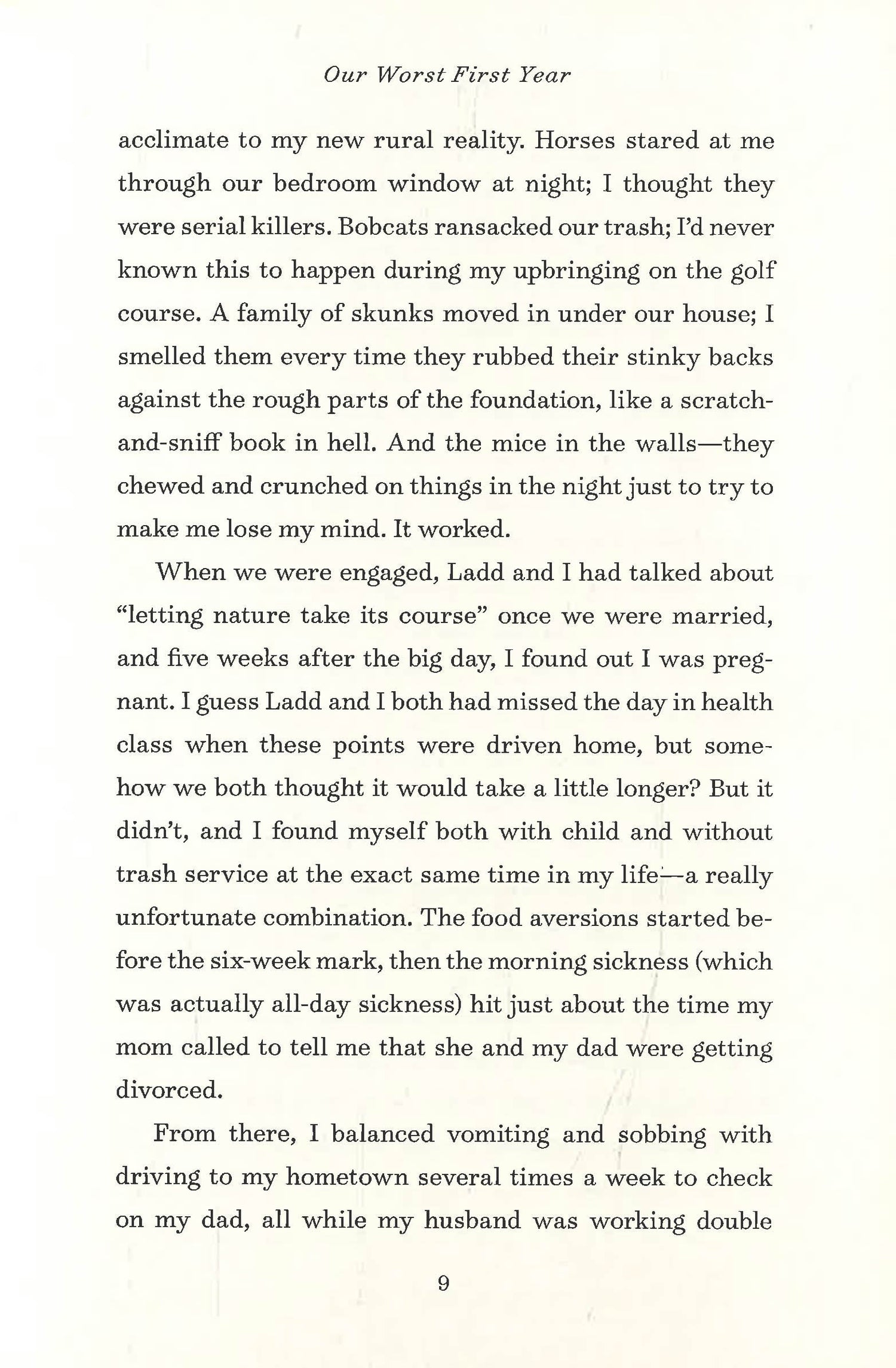 You'll learn about marital spats, run-ins with wildlife, ER visits, my parenting neuroses, triumphs, tribulations, love, loss . . . and how manure has somehow managed to weave its way through all of it. To keep things up to the minute, you'll also hear about more recent family developments that have tested my sanity and pushed me to the brink. (And pleasantly surprised me, too.)