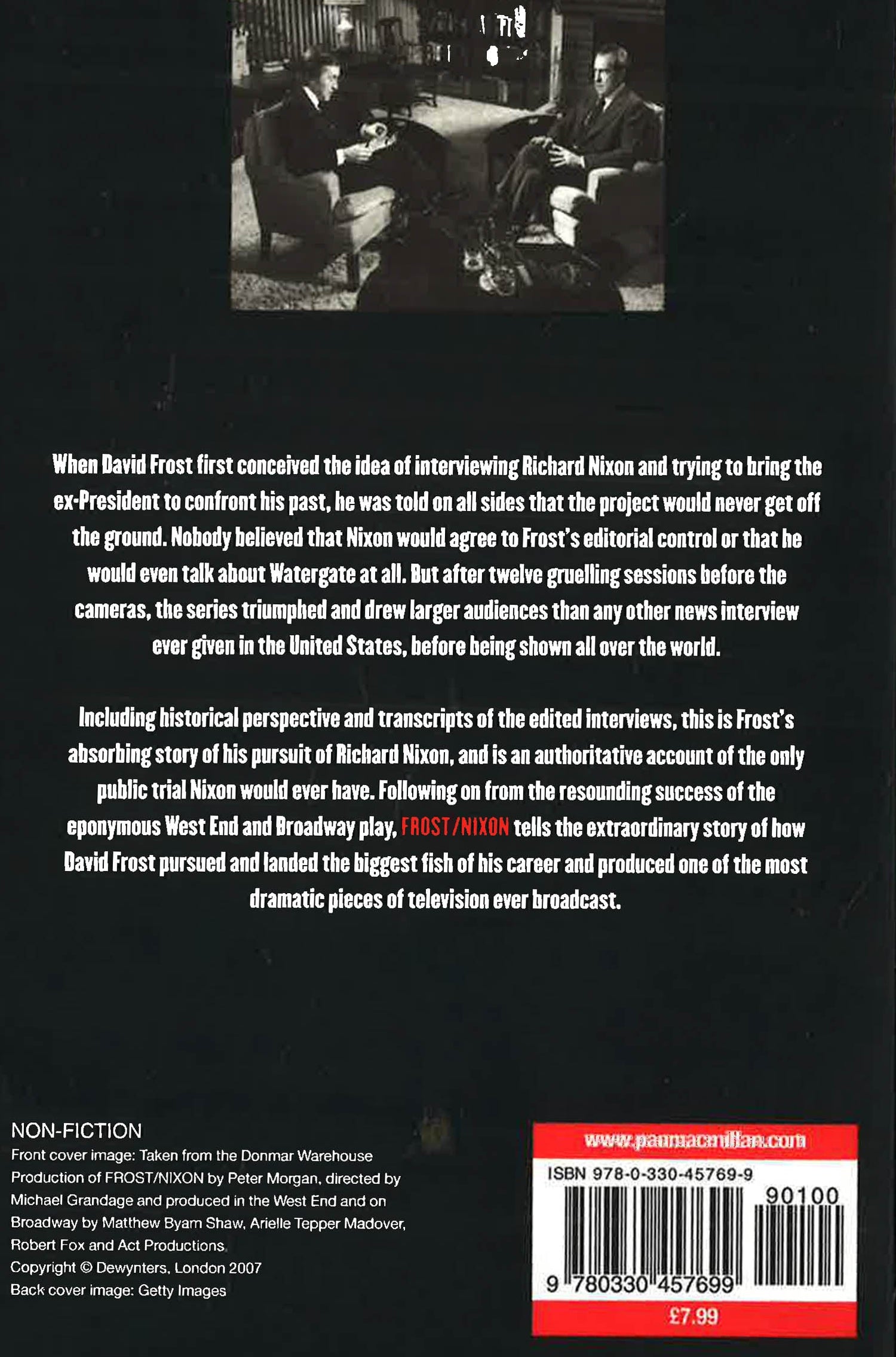 Published to coincide with the launch of Ron Howard's blockbuster film, and following on from the huge success of the eponymous West End and Broadway play, Frost/Nixon tells the extraordinary story of how David Frost pursued and landed the biggest fish of his career. When he first conceived the idea of interviewing Richard Nixon and trying to bring the ex-President to confront his past, he was told on all sides that the project would never get off the ground. Yet in the end he succeeded, and the resulting television series drew larger audiences than any news programme ever had in the United States, before being shown all over the world. Including hilarious tales of the people Frost encountered along the way and fascinating insights into the making of the series itself, this book provides an account of the only public trial that Nixon would ever have, and a revelation of the man's character as it appeared in the stress of twelve gruelling sessions before the cameras. Fully revised and updated with historical perspective, and including transcripts of the edited interviews, Frost/Nixon describes David Frost's quest to produce one of the most dramatic pieces of television ever broadcast.