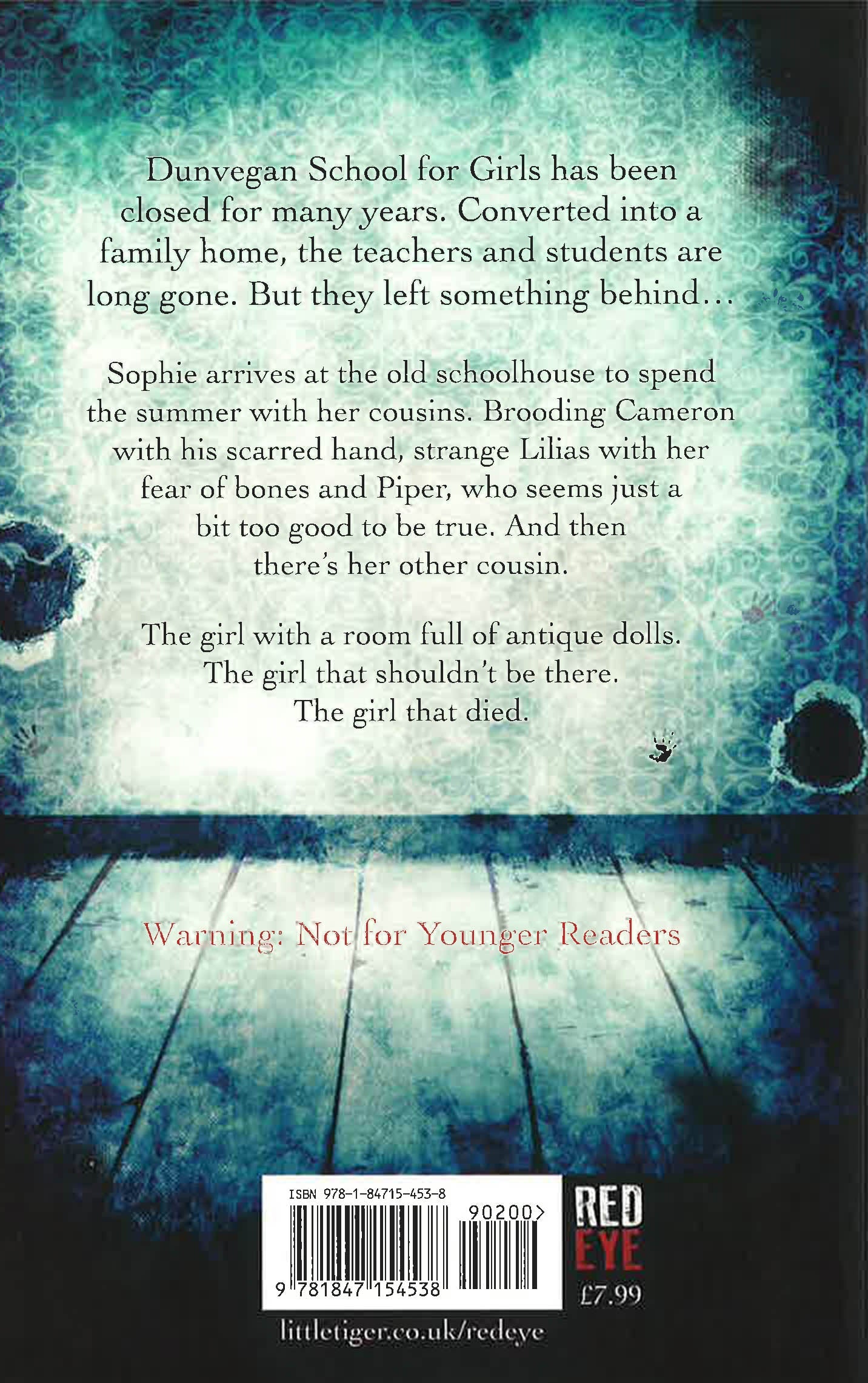 Dunvegan School for Girls has been closed for many years. Converted into a family home, the teachers and students are long gone. But they left something behind… Sophie arrives at the old schoolhouse to spend the summer with her cousins. Brooding Cameron with his scarred hand, strange Lillias with a fear of bones and Piper, who seems just a bit too good to be true. And then there's her other cousin. Thegirl with a room full of antique dolls. The girl that shouldn't be there. The girl that died. Alex Bell's chilling novel is part of the Red Eye series, perfect for fans of James Dawson's Say Her Name and Kendare Blake's Anna Dressed in Blood.