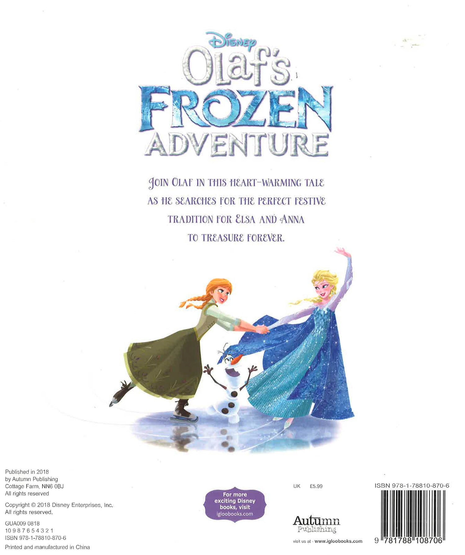 Join Olaf in this heart-warming tale as he searches for the perfect festive tradition for Elsa and Anna to treasure forever.