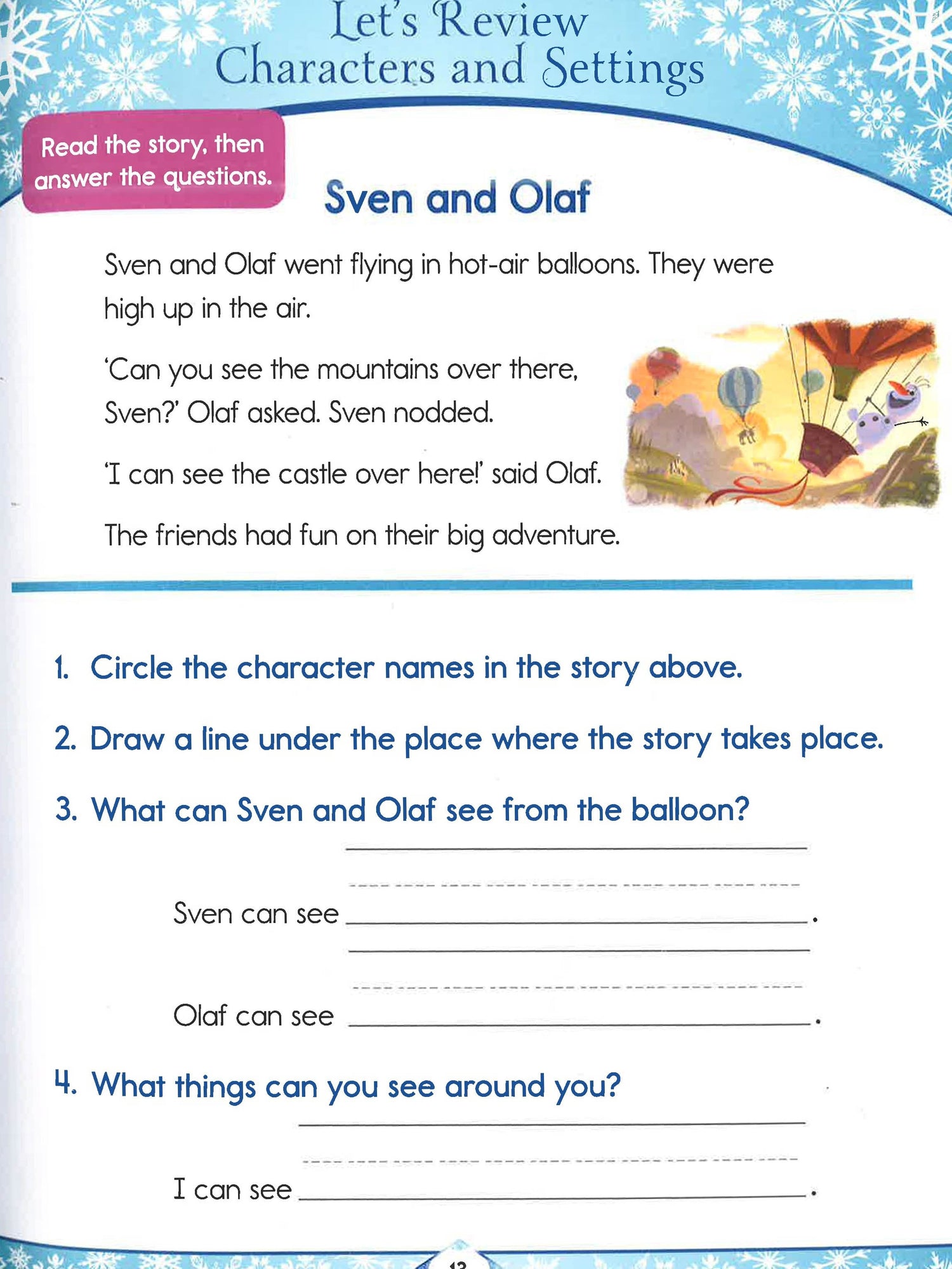With the help of Elsa, Anna and their friends from Arendelle: sequence story events predict what happens next identify synonyms and antonyms Disney Learning workbooks are curriculum-based books that integrate essential learning concepts into a range of skill-based activities. The activities are partnered with compelling stories featuring familiar and beloved Disney characters. This combination naturally engages children, helps them master crucial learning skills, encourages them to become confident and independent learners, and lays the groundwork for long-term academic success. Disney Learning gives kids the skills to succeed with fun and imaginative learning practice.