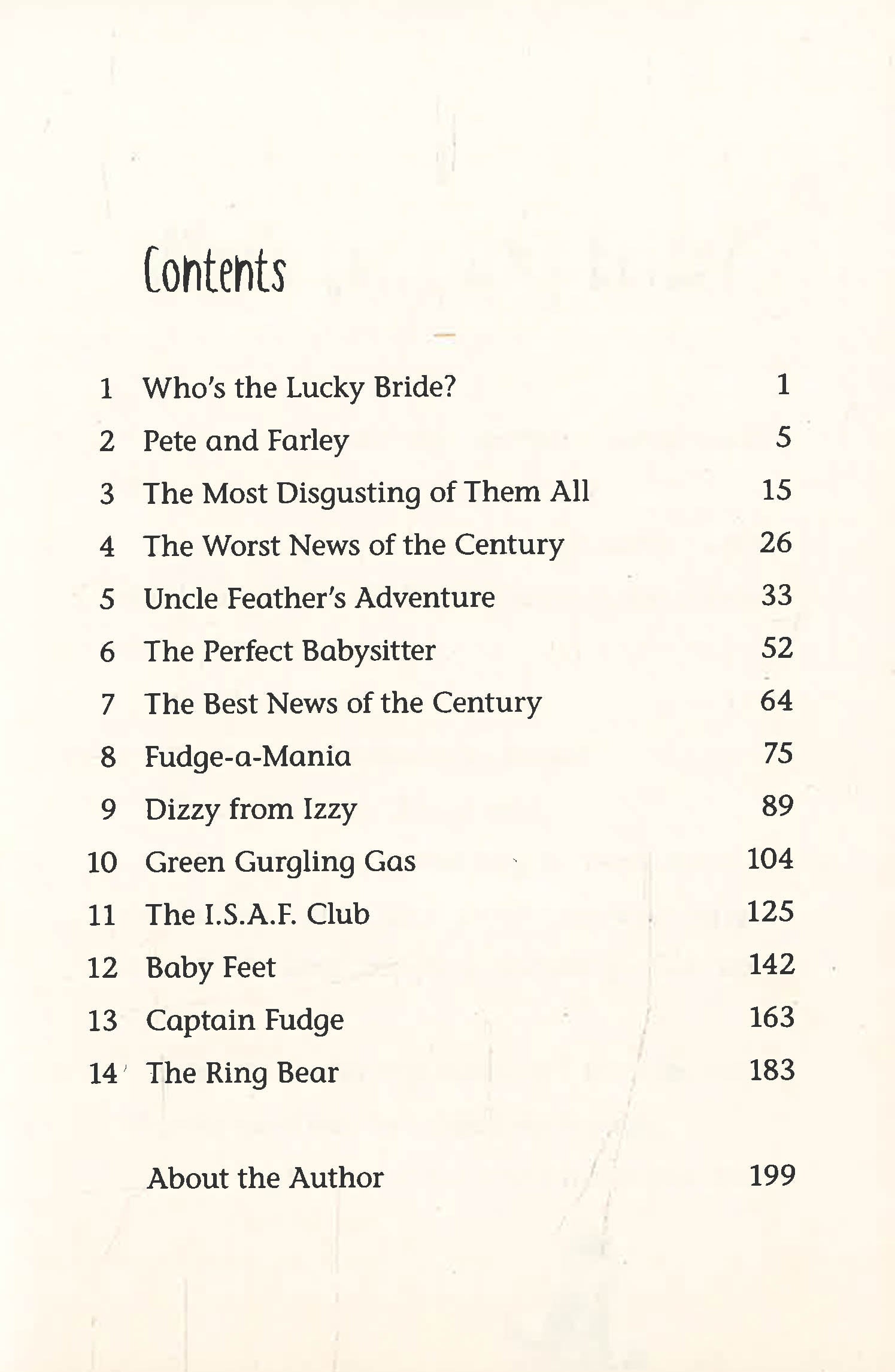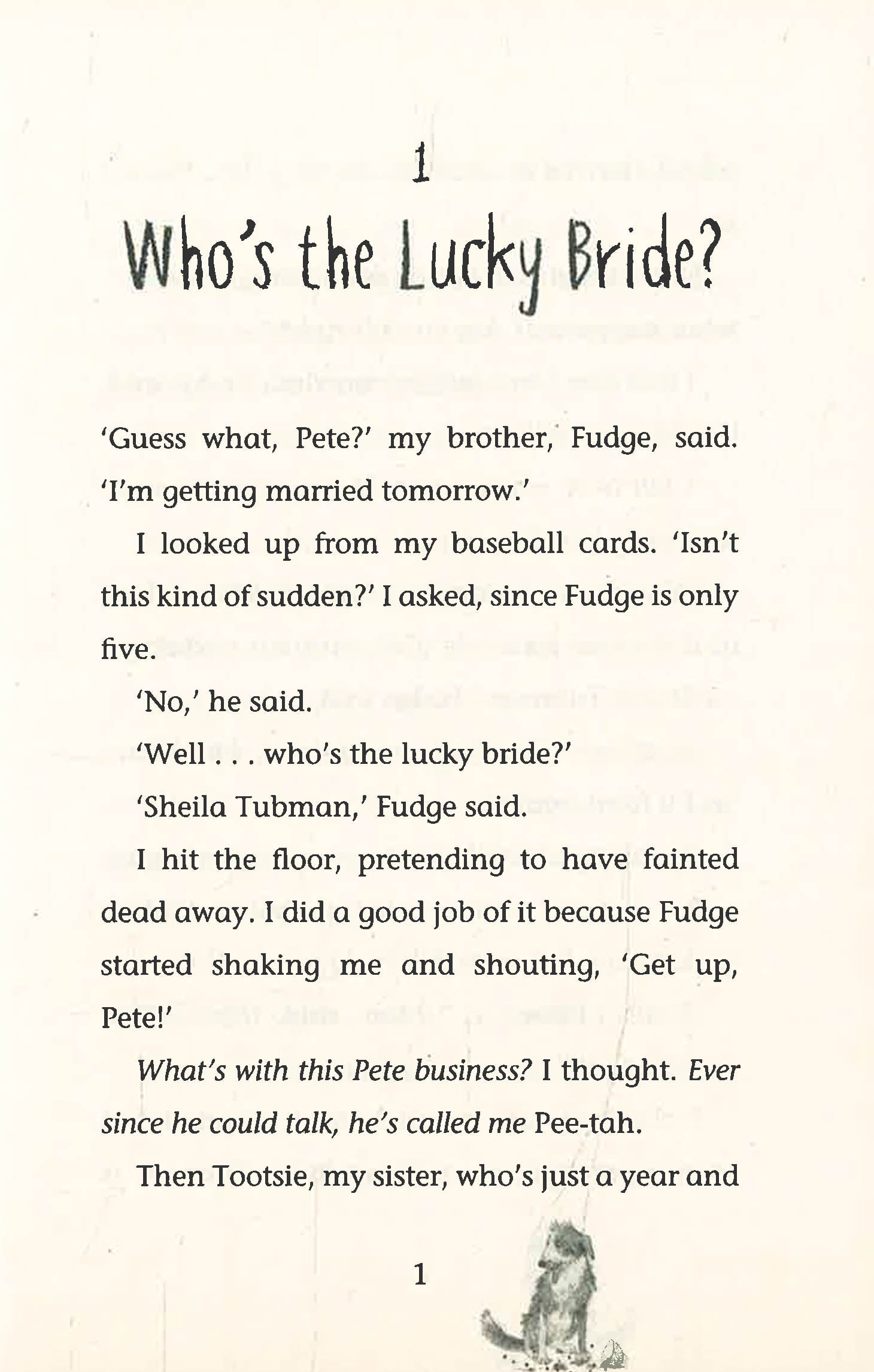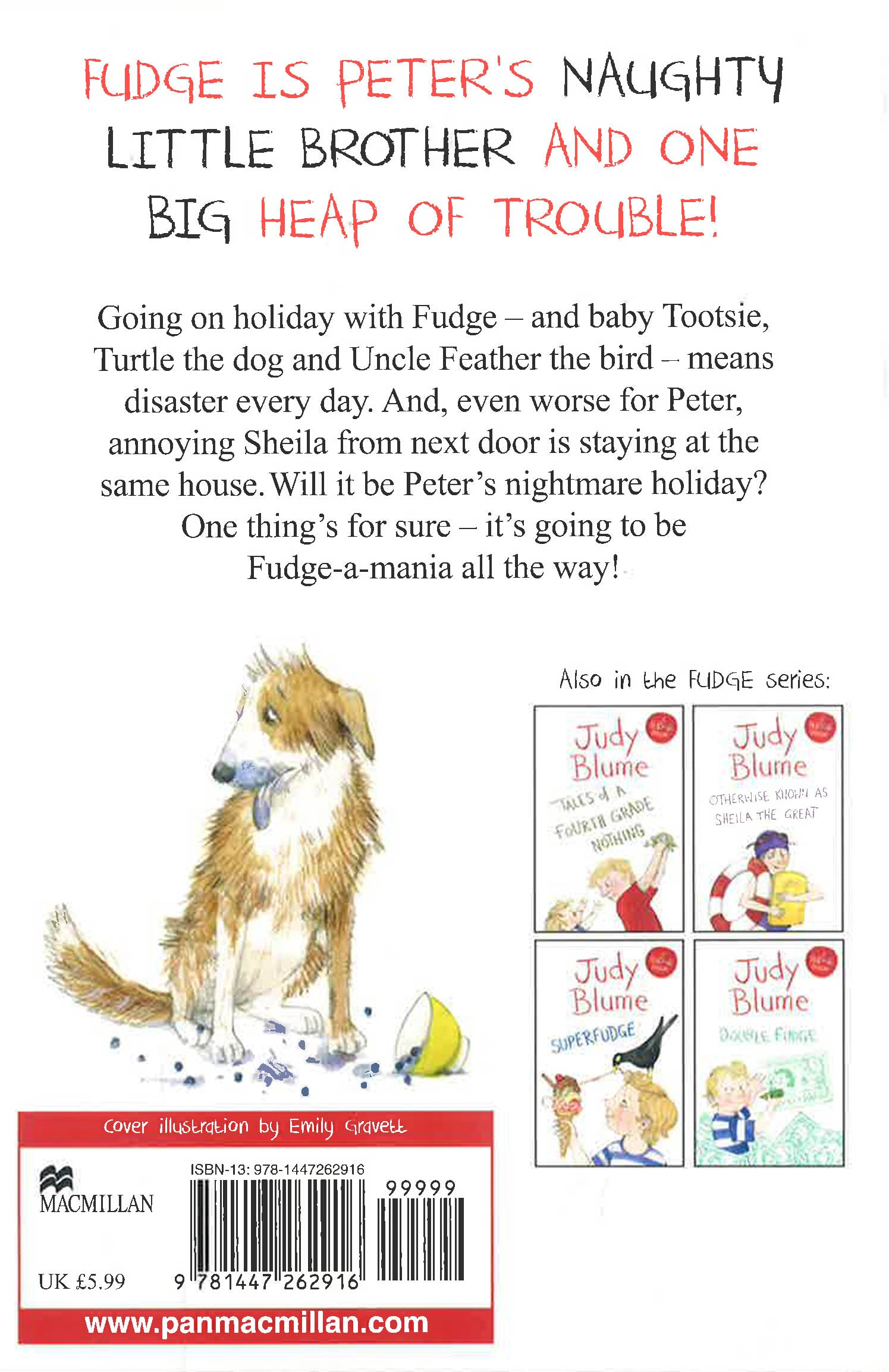 Fudge is five - and he's driving his older brother, Peter, mad, as usual. Going on holiday with Fudge - and baby Tootsie, Turtle the dog and Uncle Feather the bird - means disasters every day. Even worse for Peter, disgusting Sheila Tubman is staying in the same house. Will it be Peter's nightmare holiday? One thing's for sure - it's going to be fudge-a-mania all the way!