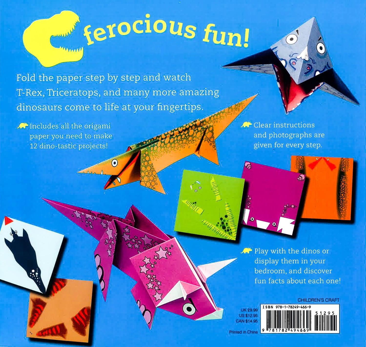 Suitable for children from age 5 and upwards, Mari Ono’s dinosaur origami projects are the perfect introduction to paper-folding for kids. Including a Velociraptor, Triceratops and, of course, a ferocious T-Rex, all the projects are fun to make and play with, and there are amazing dinosaur facts throughout, so children can learn while they craft! There are simple step-by-step instructions and clear photographs, as well as helpful arrows showing where to fold. Each design has a skill rating, so children can start with an easy one and then move on to something a bit more challenging until they are easily impressing friends with their paper-folding skills! Specially designed pieces of origami paper are included with the book, so children can start crafting straight away.