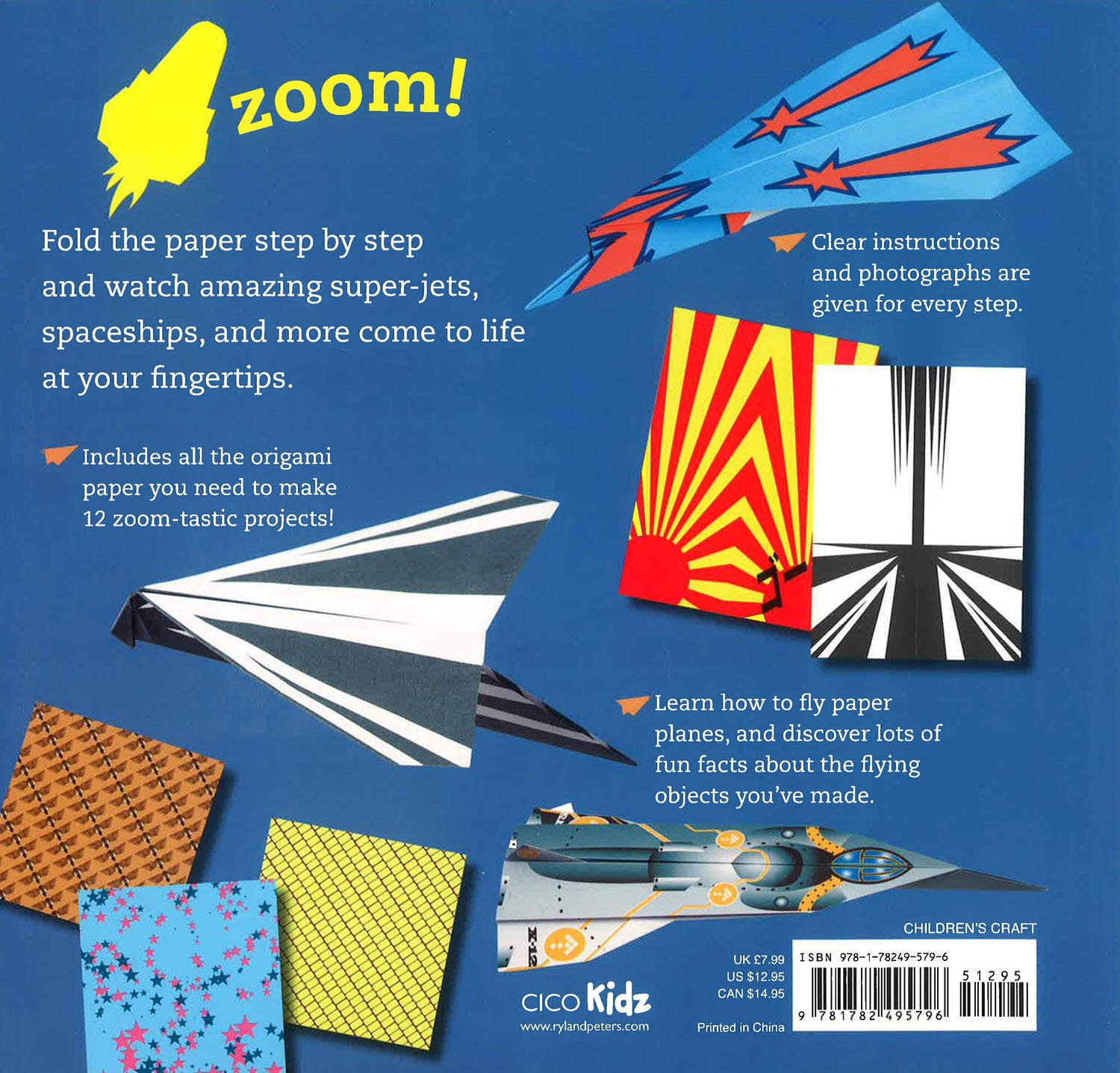 12 step-by-step origami projects for children, including paper to make them with. Suitable for children from age 5 and upwards, Mari Ono's origami projects are the perfect introduction to paper-folding for kids. Fun Origami for Children: Flight! starts with classic paper plane and glider projects to get children started, then moves on to fantastic super-jets, rockets and a space shuttle. All the projects are fun to make as well as play with, and there is a section showing how to throw paper planes most effectively. There are amazing facts throughout, so children can learn while they craft. Each project has simple step-by-step instructions and clear photographs, as well as helpful arrows showing where to fold. There are skill ratings, so children can start with an easy project and then move on to something a bit more challenging until, eventually, they are easily impressing friends with their paper-folding skills. Specially designed pieces of origami paper are included with the book, so children can start crafting straight away.