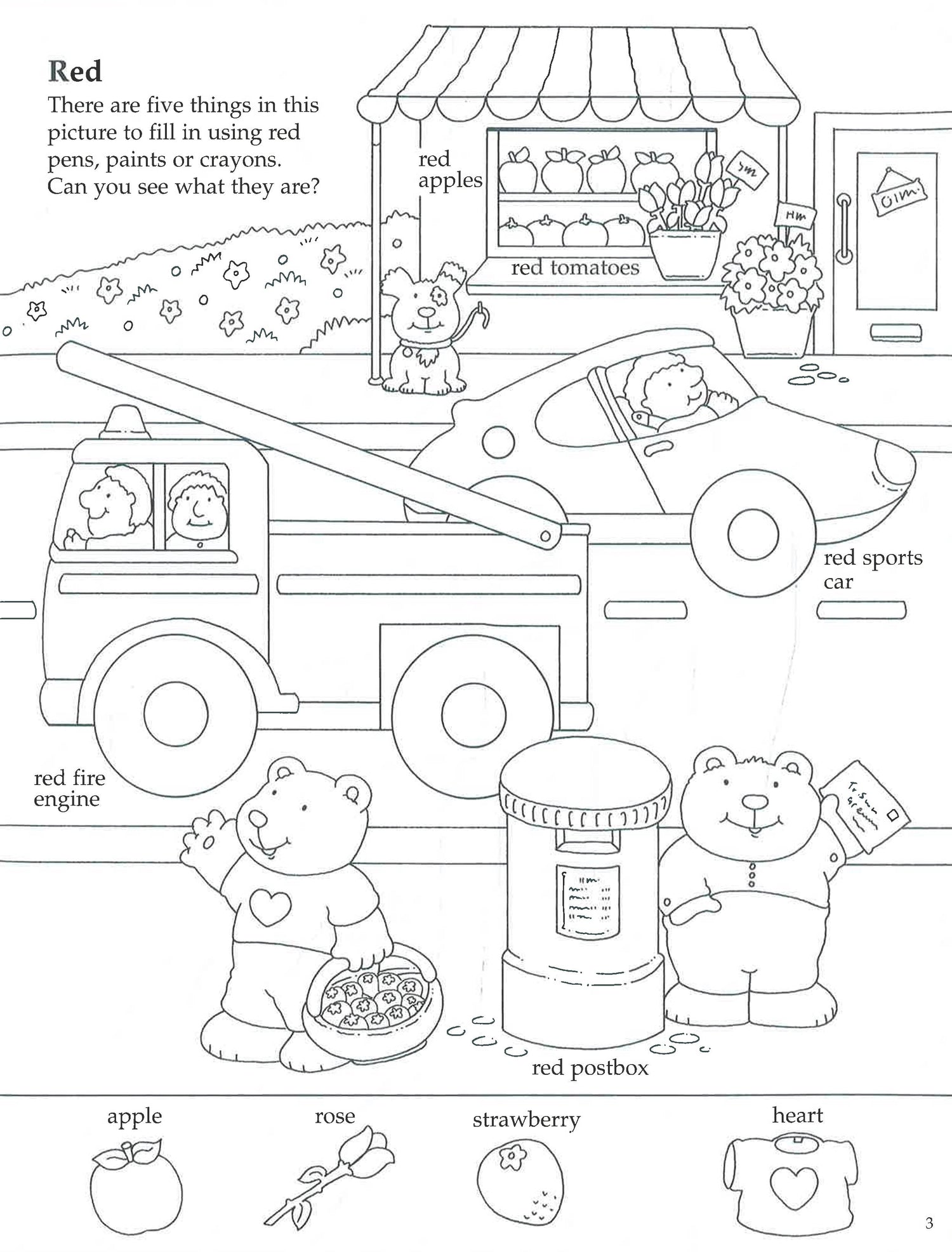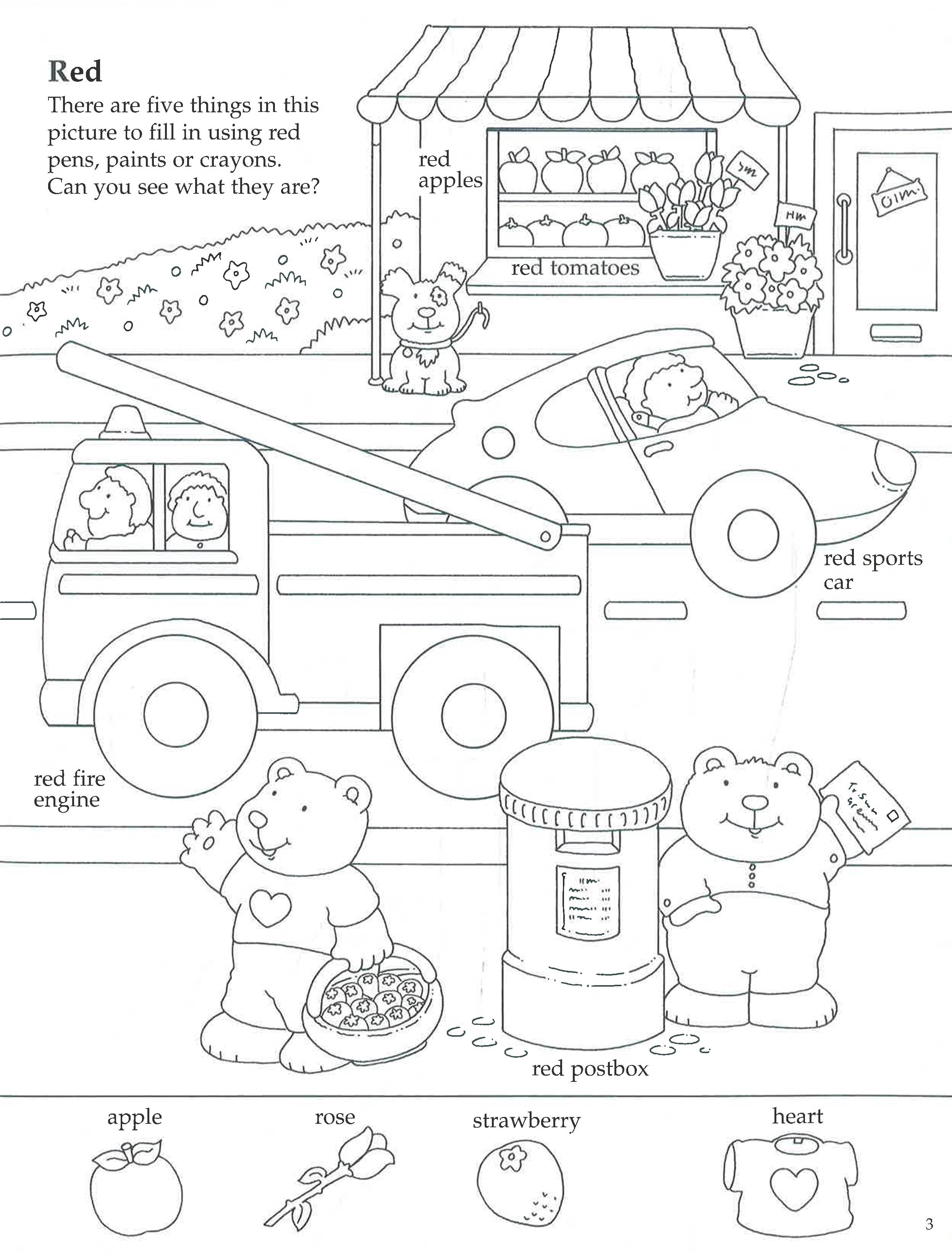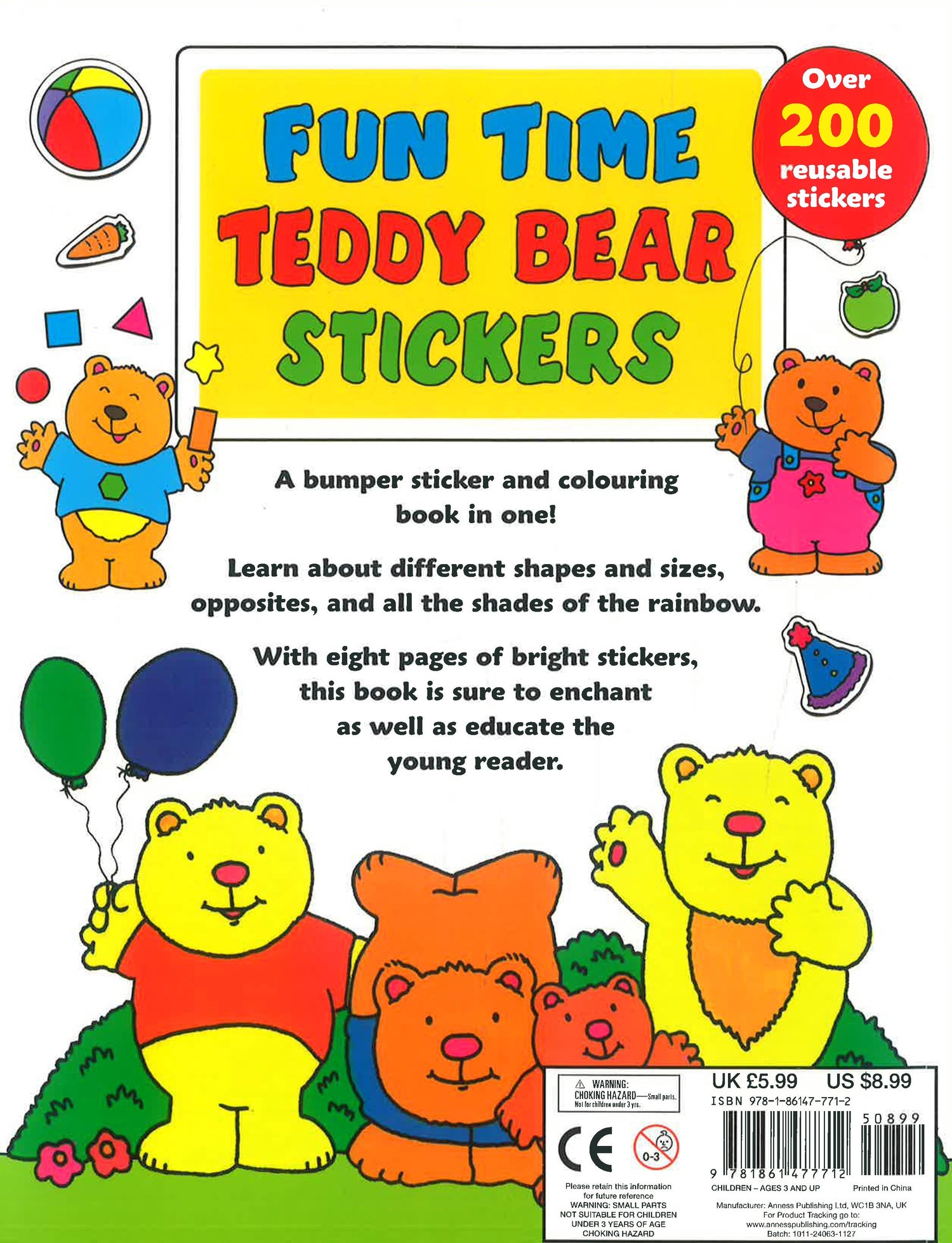 This combined sticker and colouring-in book is a charming visual introduction to first simple words and concepts. See friendly teddy bears using a red postbox, swimming in the blue sea, and walking on the green grass. Contrast front and back, clean and dirty, wet and dry, summer and winter, and many other entertaining opposites. Spot the largest and smallest things in big picture scenes. The pages can be filled in using pencils, crayons or pens, and then finished off by placing the special reusable stickers on each page. Have fun!