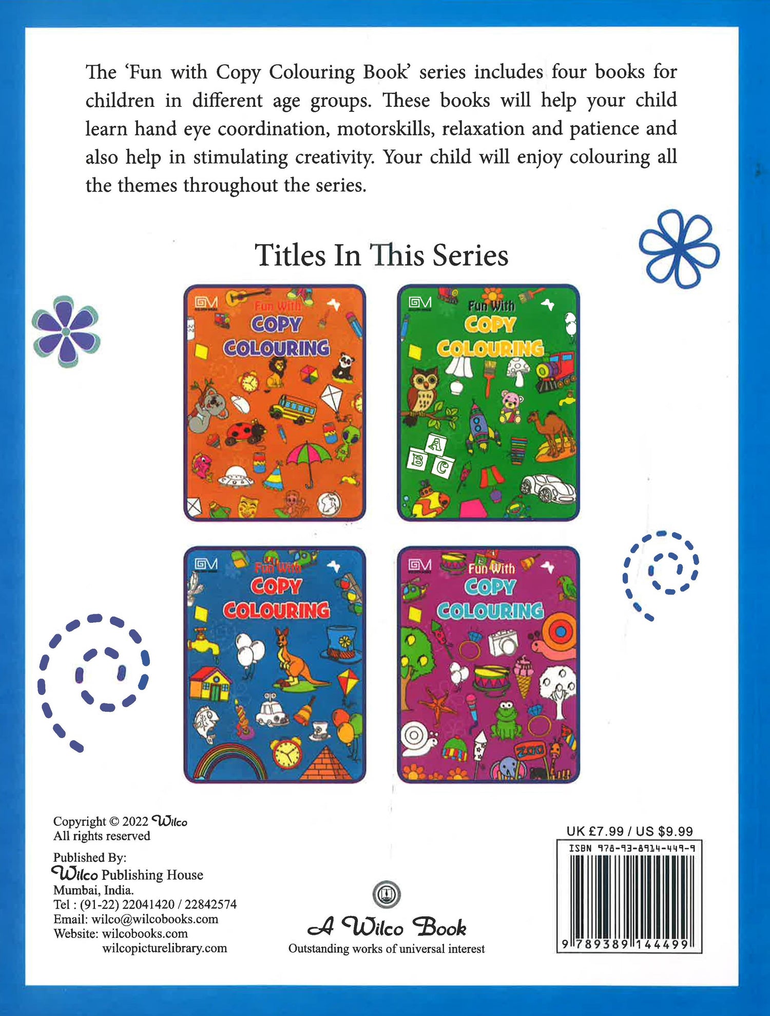 The 'Fun with Copy Colouring Book' series includes four books for children in different age groups.