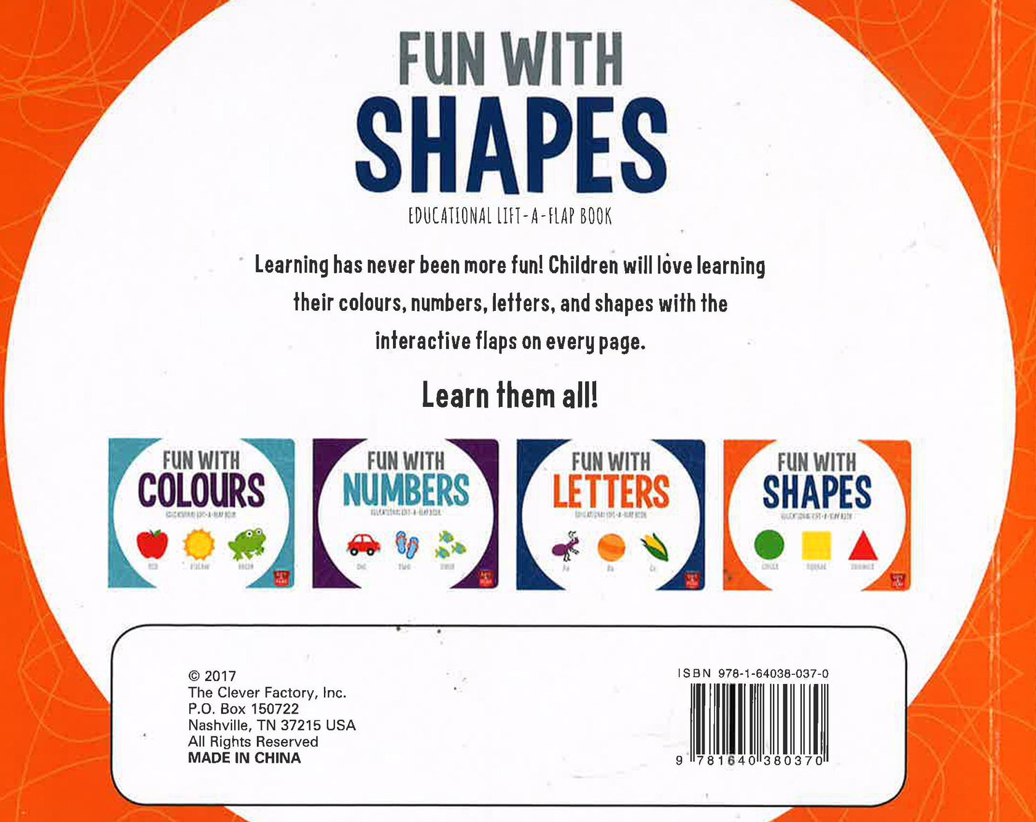 Learnning has never been more fun! Children will love learning their colours, numbers, letters and shapes with the interactive flaps on every page.