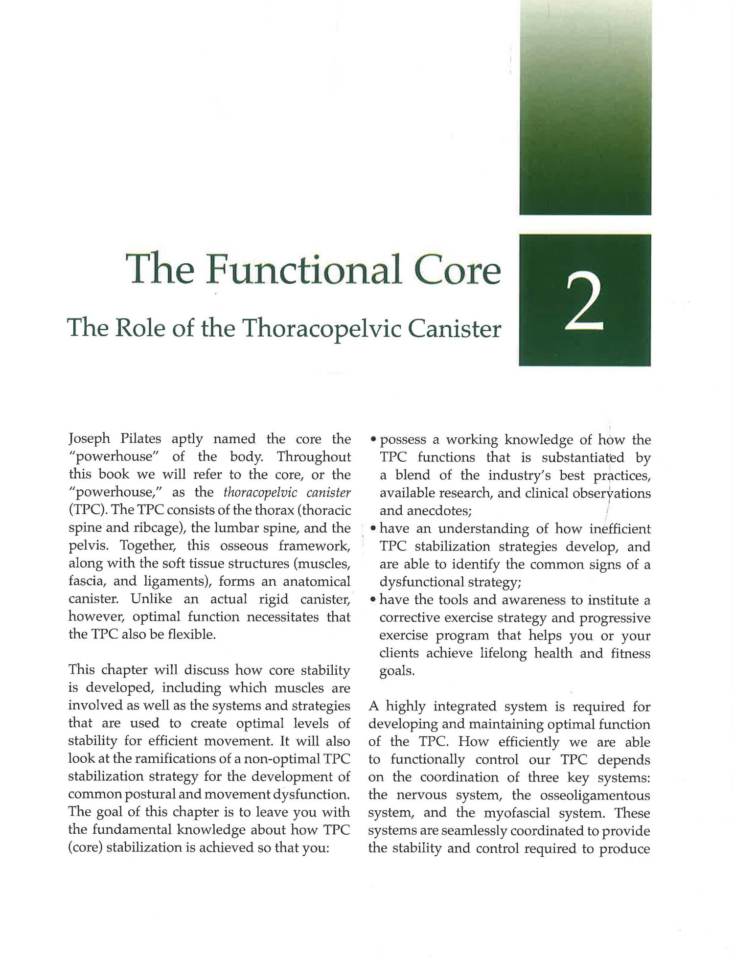 Pilates is a widely accepted and utilized method for promoting health and proper movement patterns through the development of balanced muscles, joint alignment, and core control. However, when the principles of functional anatomy - anatomy based on how humans are designed to stabilize and move - are not considered during exercise application, the result can be muscle imbalances, chronic tightness, and even pain. Functional Anatomy of the Pilates Core reveals the missing connection between functional anatomy of the core and its application during fundamental core exercises in Pilates. By integrating the six fundamental principles of the Pilates method with a descriptive application of functional core anatomy, the authors illustrate clearly how to: * achieve the alignment, breathing, and control required for developing optimal posture and movement; * suppress non-optimal habits that relate to common postural dysfunction, muscle imbalances, and chronic tightness; * incorporate optimal alignment, breathing, and control into the fundamental Pilates principles in order to develop a more stable core and eliminate the risks of common injuries while accomplishing one's health and fitness goals.