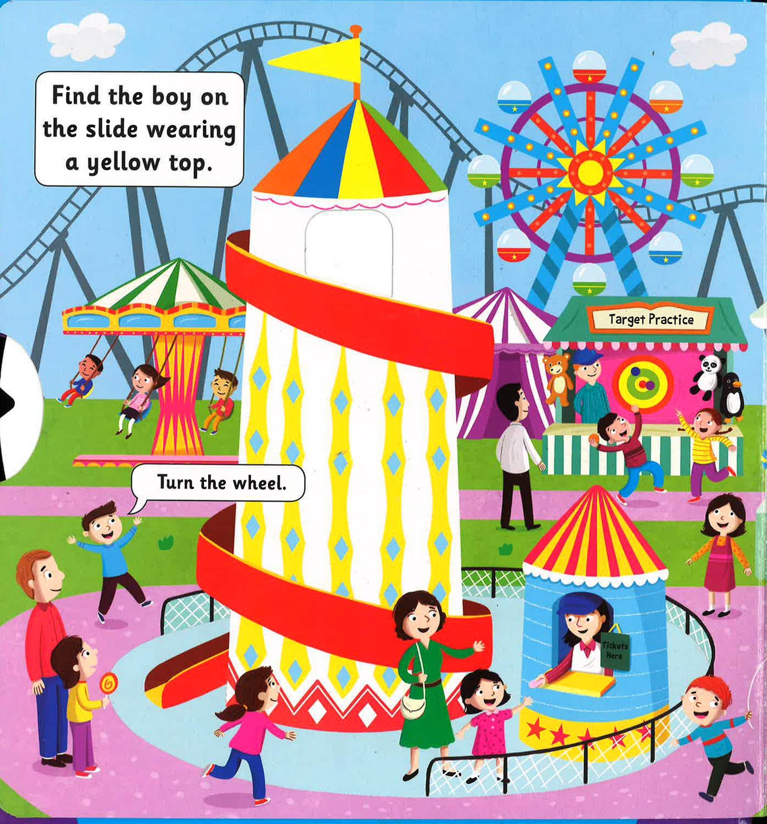Enjoy the fun of the fair in this fantastic interactive play book. With sliders, spinners, flaps and tabs, plus early-learning elements. Funfair is the perfect addition to your child's playtime.
