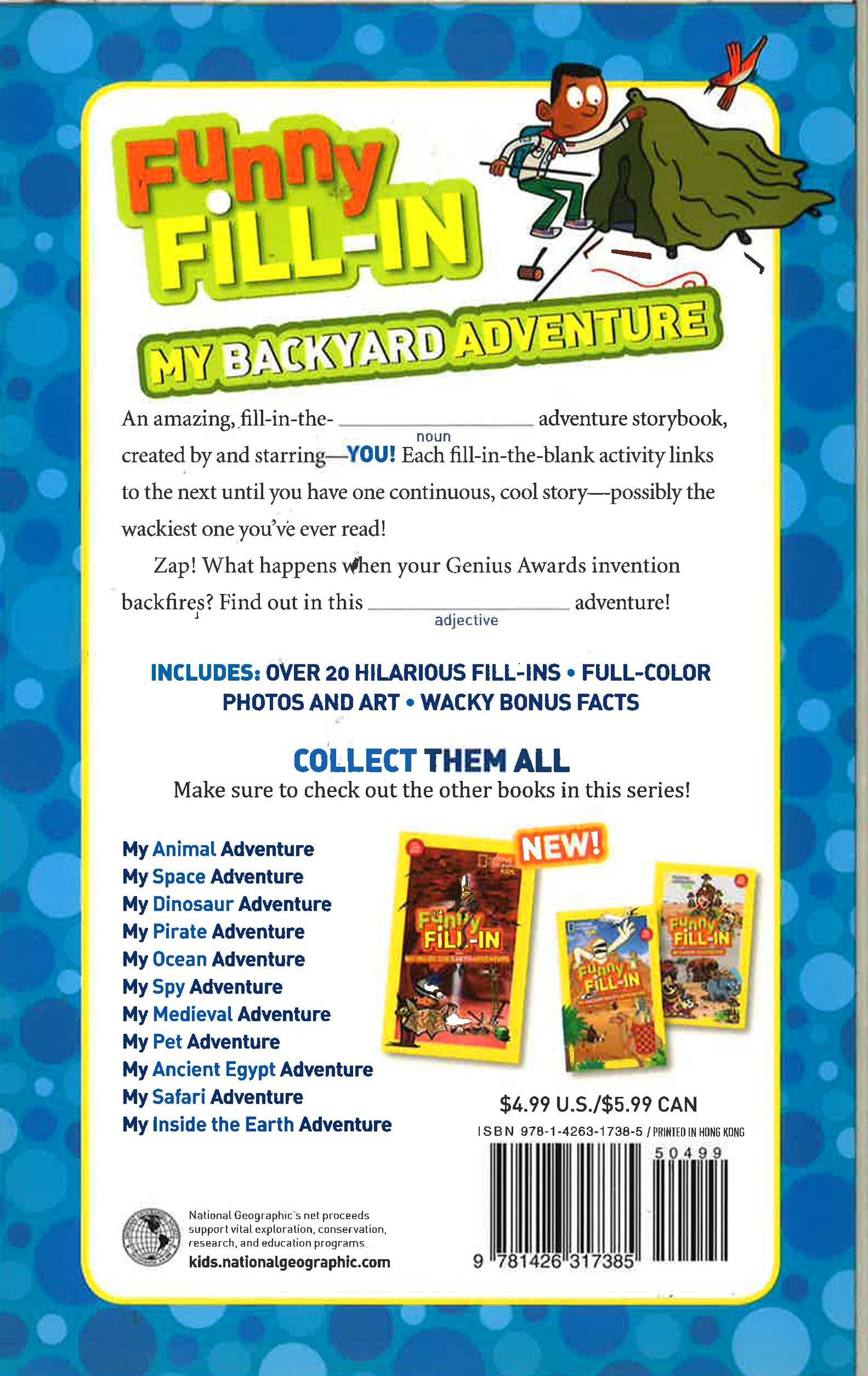 You've just been shrunken down to minature size and sent to roam the backyard! What happens next is up to YOU! Filled with excitement and hilarity, this compositional challenge lets you tell your very own story starring...YOU! Combining National Geographic Kids' photography and illustrations in colorful laugh-out-loud pages, this engaging, entertaining, and educational book introduces you to animals and people from your backyard, and invites you to enter a new world imaginatively by combining your story with theirs.