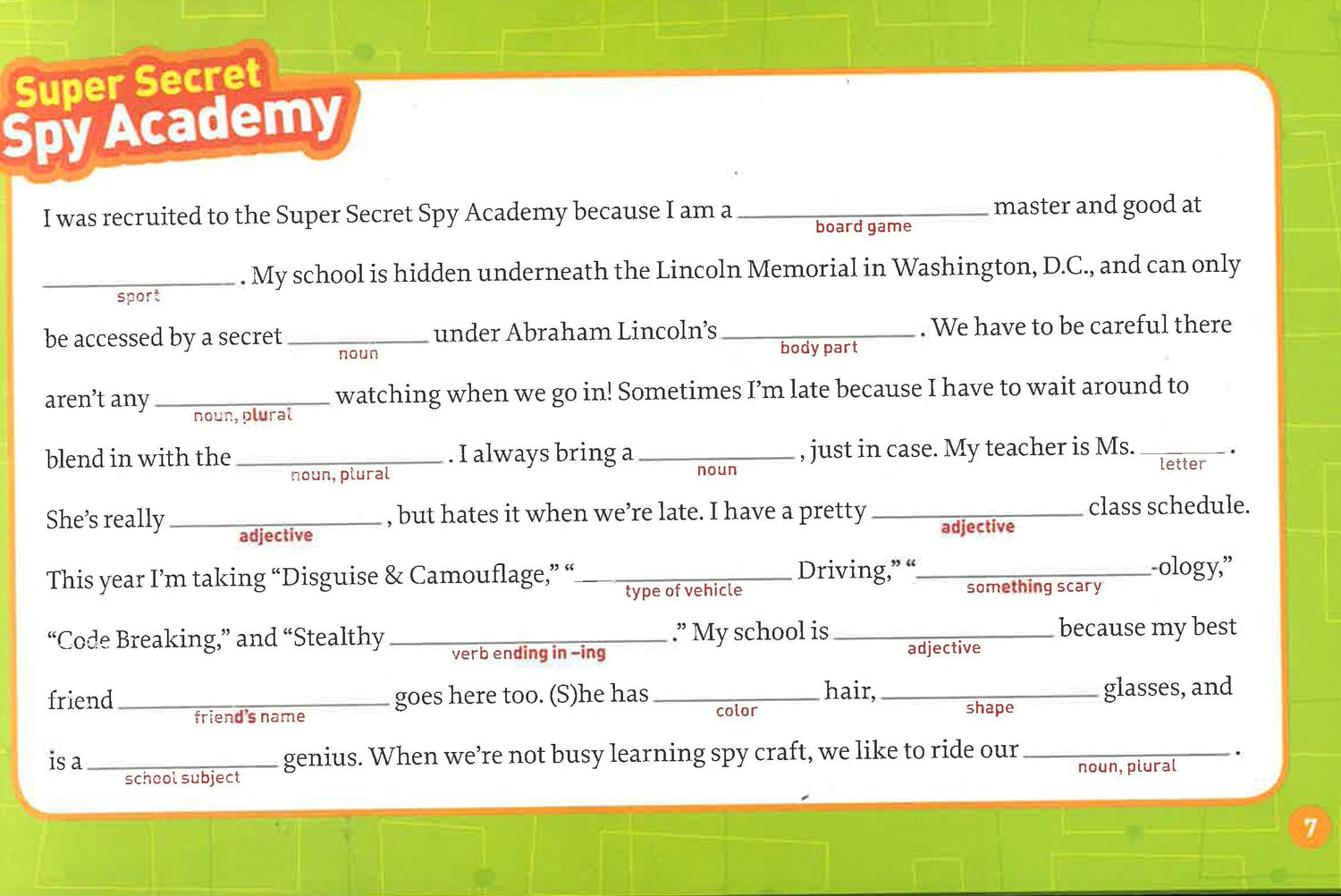 You've been accepted to Super Secret Spy School and been assigned the mission of a lifetime! What happens next is up to YOU! Filled with excitement and hilarity, this compositional challenge lets you tell your very own story starring . . . YOU! Combining National Geographic Kids' photography and illustrations in colorful laugh-out-loud pages, this engaging, entertaining, and educational book introduces you to animals and people from all over the spy world, and invites you to enter a new world imaginatively by combining your story with theirs.