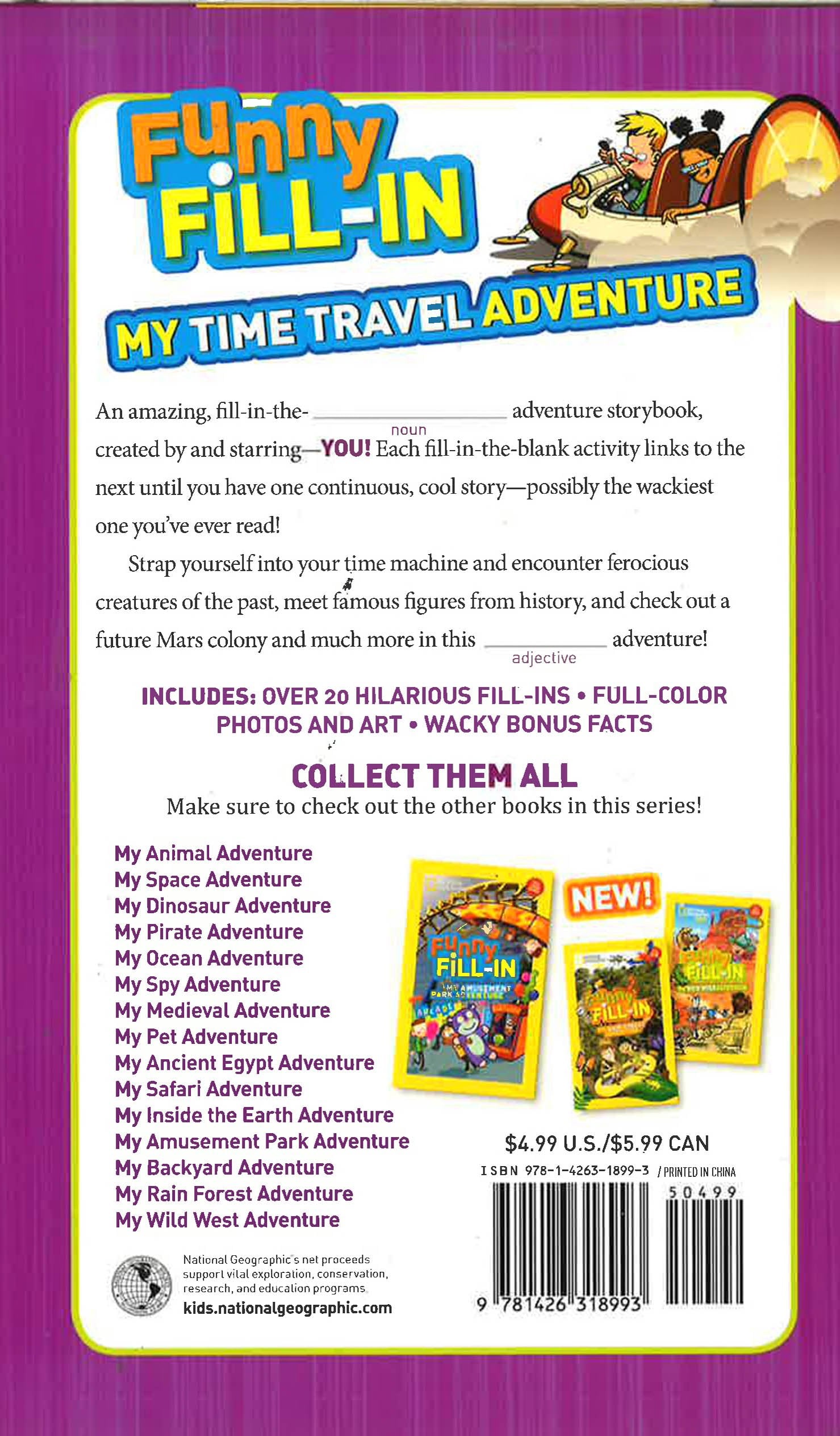 You're on an awesome adventure through time! Where do you go? What do you do? It's up to YOU! Filled with excitement and hilarity, this compositional challenge lets you tell your very own story starring...YOU! Combining National Geographic Kids' photography and illustrations in colorful laugh-out-loud pages, this engaging, entertaining, and educational book introduces you to people and places from all throughout time, and invites you to enter a new world imaginatively by combining your story with theirs.