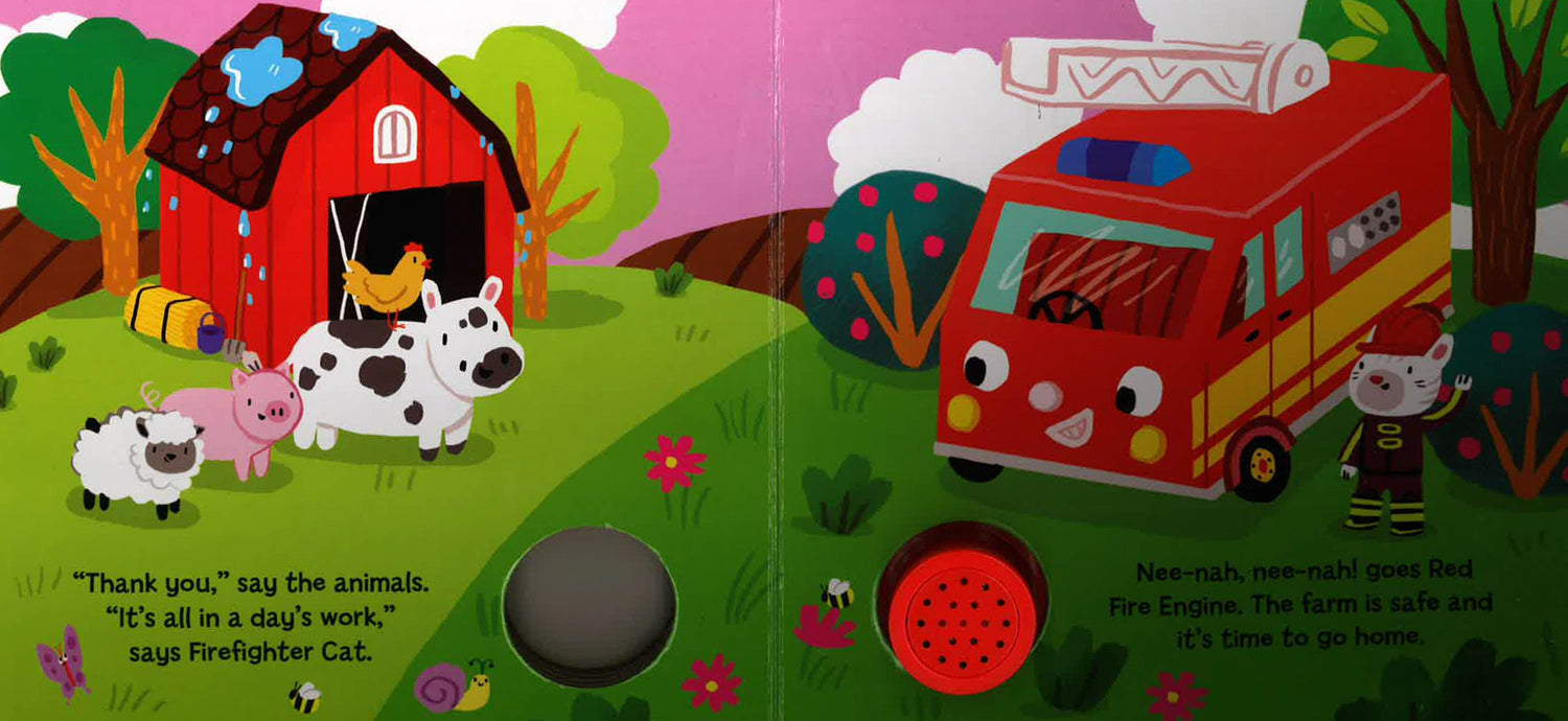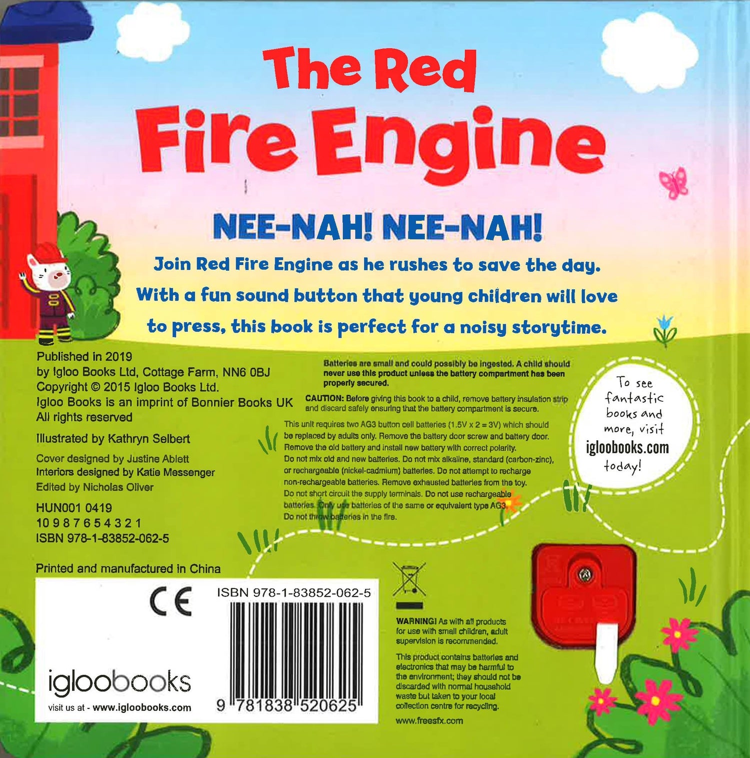 Join Red Fire Engine as he rushes to put out a fire and save the day in this brilliant sound book. Press the big button to hear the siren and enjoy a noisy storytime together. A wonderful interactive book that young children are sure to love.