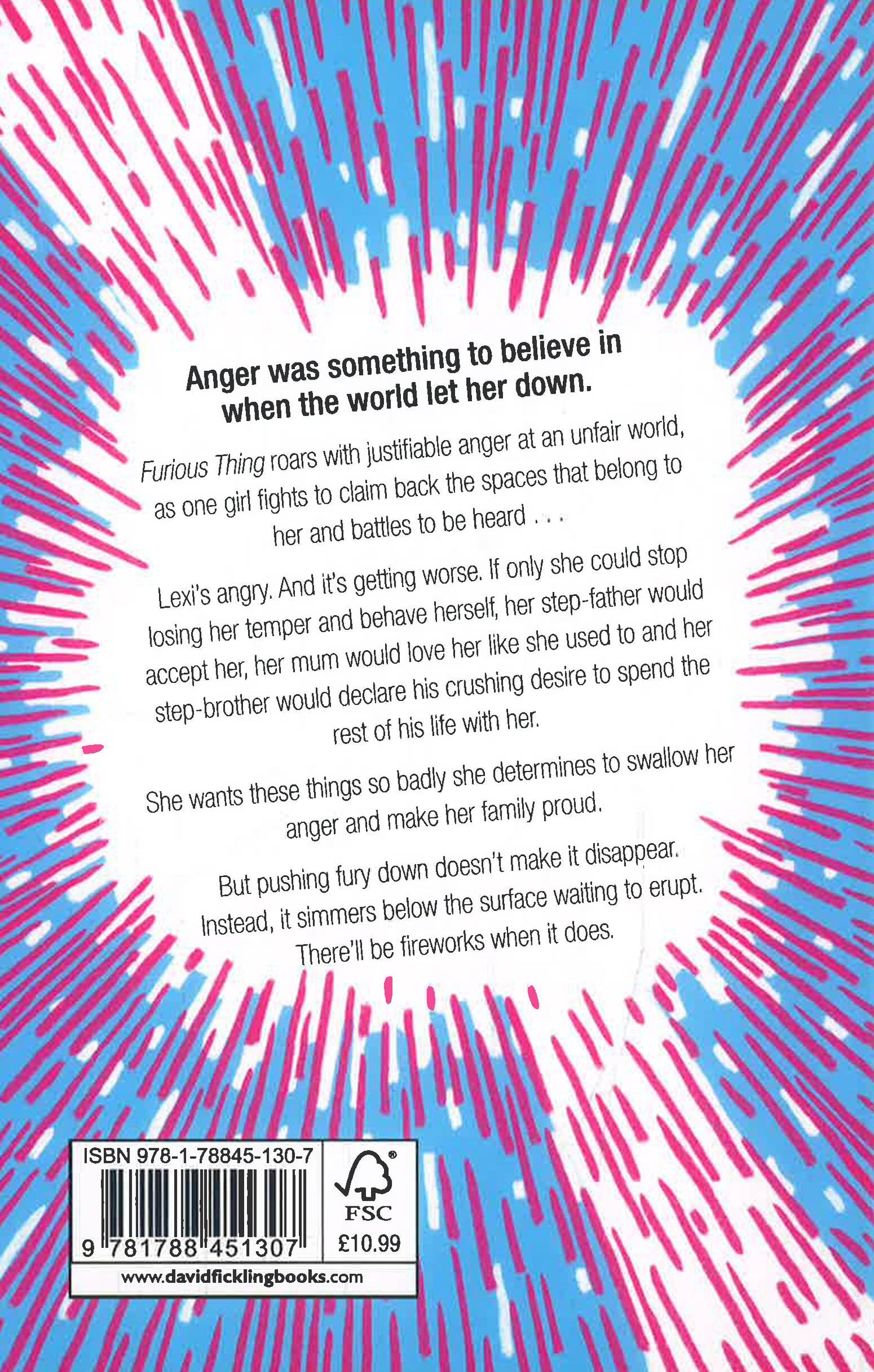 Anger was something to believe in when the world let her down. FURIOUS THING roars with justifiable anger at an unfair world, as one girl fights to claim back the spaces that belong to her and battles to be heard . . . Lexi's angry. And it's getting worse. If only she could stop losing her temper and behave herself, her step-father would accept her, her mum would love her like she used to and her step-brother would declare his crushing desire to spend the rest of his life with her. She wants these things so badly she determines to swallow her anger and make her family proud. But pushing fury down doesn't make it disappear. Instead, it simmers below the surface waiting to erupt. There'll be fireworks when it does.