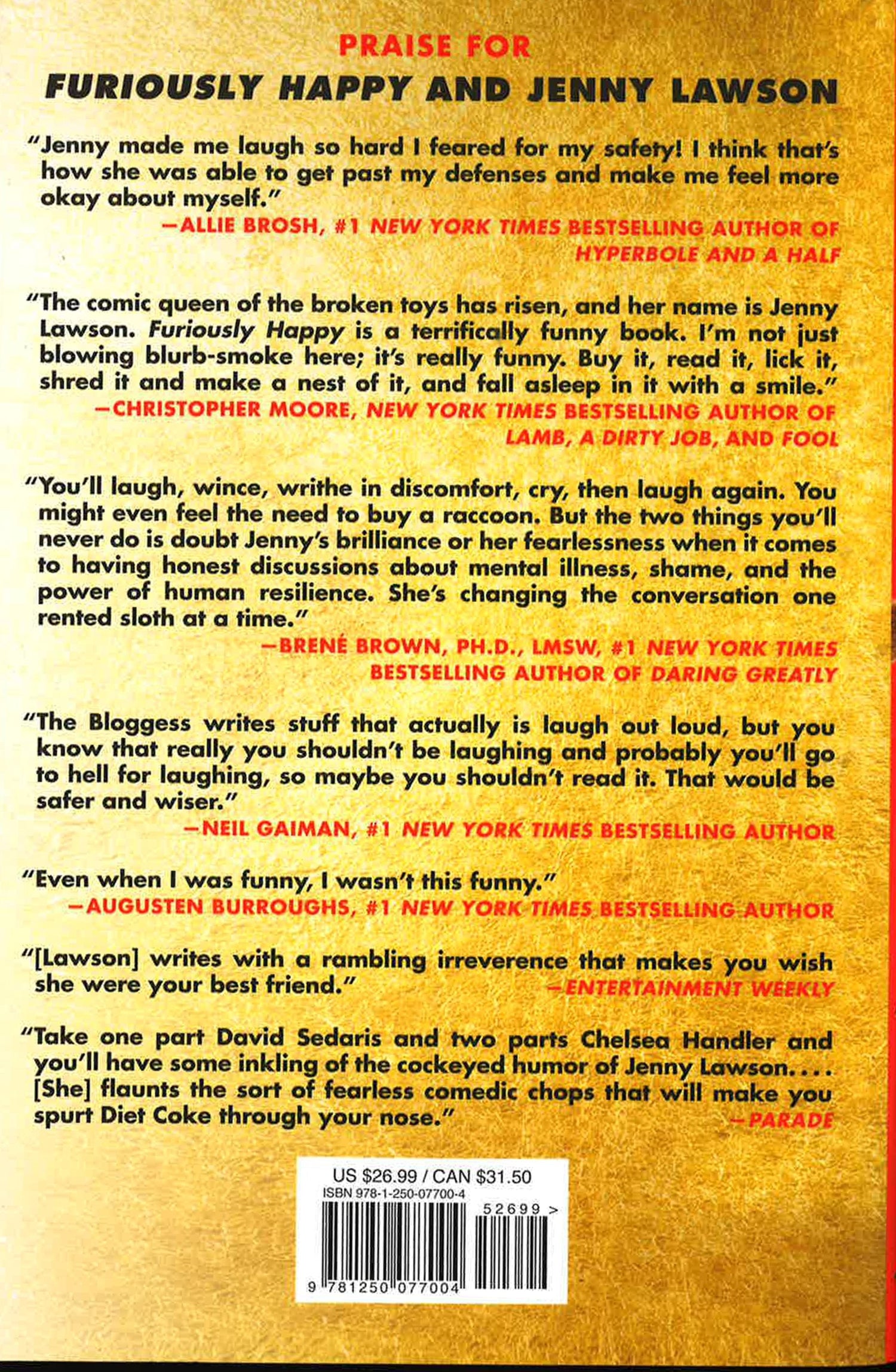 In Furiously Happy, #1 New York Times bestselling author Jenny Lawson explores her lifelong battle with mental illness. A hysterical, ridiculous book about crippling depression and anxiety? That sounds like a terrible idea. But terrible ideas are what Jenny does best. As Jenny says: "Some people might think that being 'furiously happy' is just an excuse to be stupid and irresponsible and invite a herd of kangaroos over to your house without telling your husband first because you suspect he would say no since he's never particularly liked kangaroos. And that would be ridiculous because no one would invite a herd of kangaroos into their house. Two is the limit. I speak from personal experience. My husband says that none is the new limit. I say he should have been clearer about that before I rented all those kangaroos. "Most of my favorite people are dangerously messed-up but you'd never guess because we've learned to bare it so honestly that it becomes the new normal. Like John Hughes wrote in The Breakfast Club, 'We're all pretty bizarre. Some of us are just better at hiding it.' Except go back and cross out the word 'hiding.'" Furiously Happy is about "taking those moments when things are fine and making them amazing, because those moments are what make us who we are, and they're the same moments we take into battle with us when our brains declare war on our very existence. It's the difference between "surviving life" and "living life". It's the difference between "taking a shower" and "teaching your monkey butler how to shampoo your hair." It's the difference between being "sane" and being "furiously happy." Lawson is beloved around the world for her inimitable humor and honesty, and in Furiously Happy, she is at her snort-inducing funniest. This is a book about embracing everything that makes us who we are - the beautiful and the flawed - and then using it to find joy in fantastic and outrageous ways. Because as Jenny's mom says, "Maybe 'crazy' isn't so bad after all." Sometimes crazy is just right.