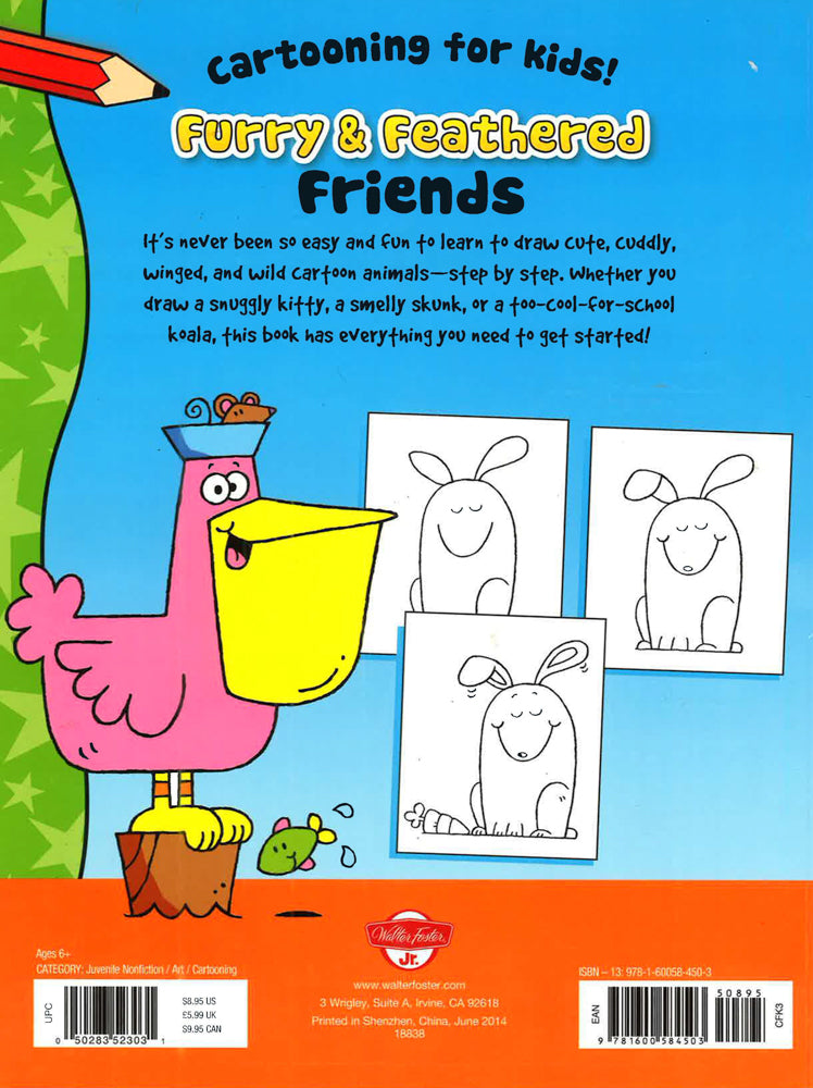 Children will love learning how to reinterpret their favorite animal friends in cartoon form, as well as design their own favorite critters, all with a colorful, silly touch. Featured sections cover humorous characteristics, silly expressions, and over-the-top gestures that make a cartoon animal come to life on the page, as well as creative ideas and techniques for rendering a favorite animal in an unexpected costume, disguise, or location. Projects include popular animals and quirky pets, including dogs, cats, birds, hamsters, rabbits, and more, reinterpreted in a fun and whimsical kid-friendly style! Each lesson begins with a simple shape and progresses to a colorful final piece of art, making it easy for budding artists of all skill levels to follow along.