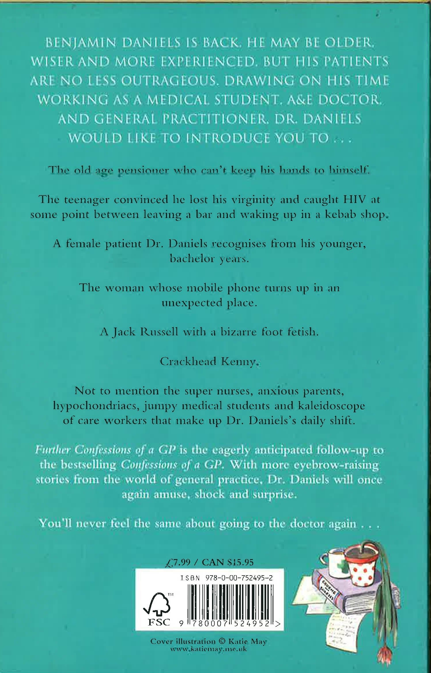 Benjamin Daniels is back. He may be older, wiser and more experienced, but his patients are no less outrageous. Drawing on his time working as a medical student, a locum, and a general practitioner, Dr Daniels would like to introduce you to ... The old age pensioner who can't keep his hands to himself. The teenager convinced that he lost his virginity and caught HIV sometime between leaving a bar and waking up in a kebab shop. A female patient Dr Daniels recognises from his younger, bachelor years. The woman whose mobile phone turns up in an unexpected place. A Jack Russell with a bizarre foot fetish. Crackhead Kenny. Not to mention the super nurses, anxious parents, hypochondriacs, jumpy medical students and kaleidoscope of care workers that make up Dr Daniels' daily shift. Further Confessions of a GP is the eagerly anticipated follow-up to the bestselling Confessions of a GP. With more eyebrow-raising stories from the world of general practice, Dr Daniels will once again amuse, shock and surprise. You'll never feel the same about going to the doctor again...