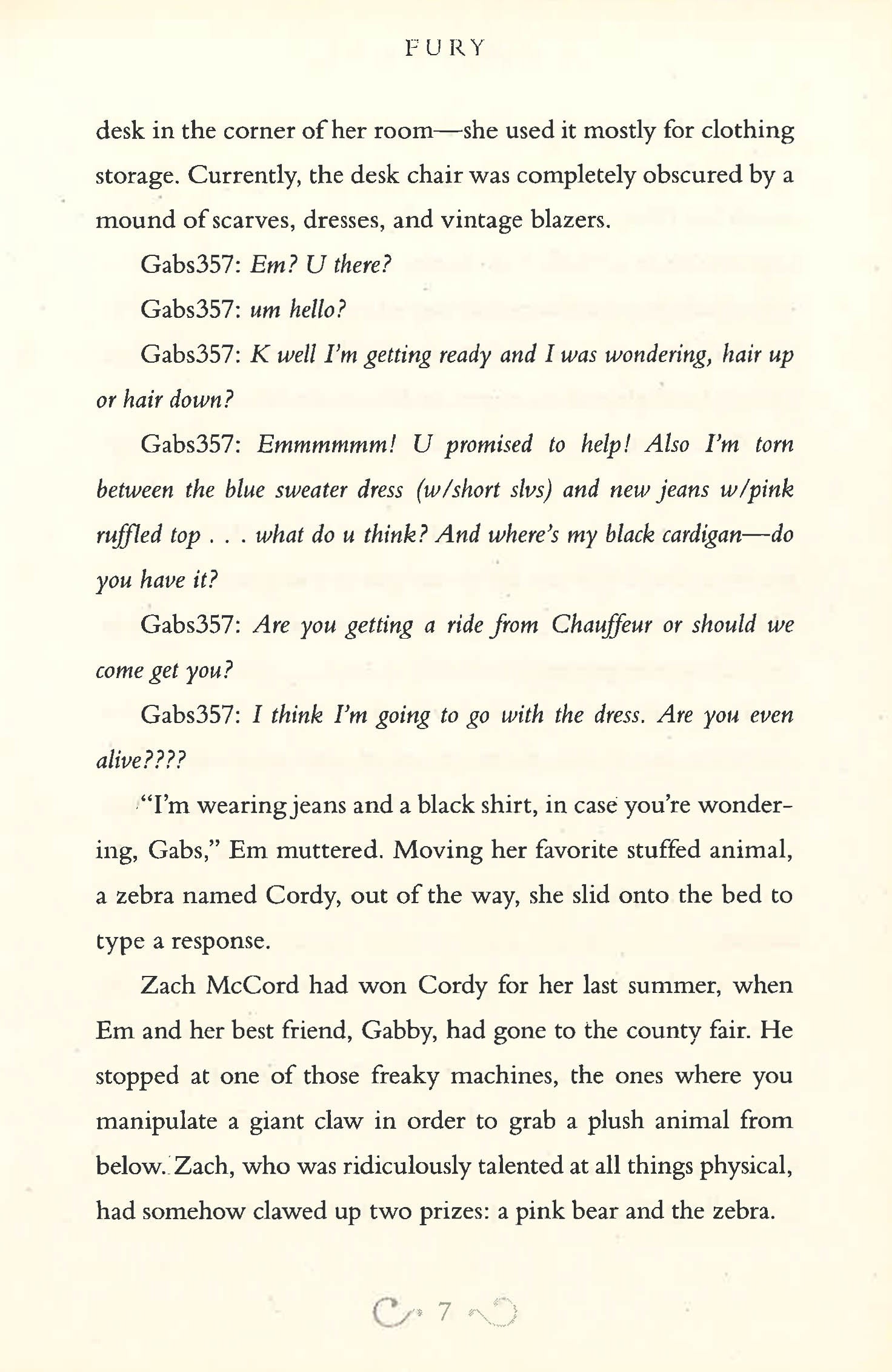 Sometimes sorry isn't enough. Em Winters and Chase Singer discover that a little guilt isn't the only consequence of doing wrong. After Em hooks up with her best friend's boyfriend and Chase's secret harassment of a social outcast spirals out of control, three mysterious Furies - paranormal creatures that often assume the form of beautiful women - come to town to make sure that Em and Chase get what they deserve. Not everyone will survive - and those who do will discover there are worse punishments than death. But when Em befriends outcast Drea and learns more about who and what the Furies really are, she becomes resolved above all to take them down and stop their plans. Little does Em know that, by confronting the Furies, she could become inextricably bound to them for life. "Achingly gorgeous, Fury seduced me" - Lauren Kate, author of the bestselling Fallen series. Book 1 in the Fury trilogy
