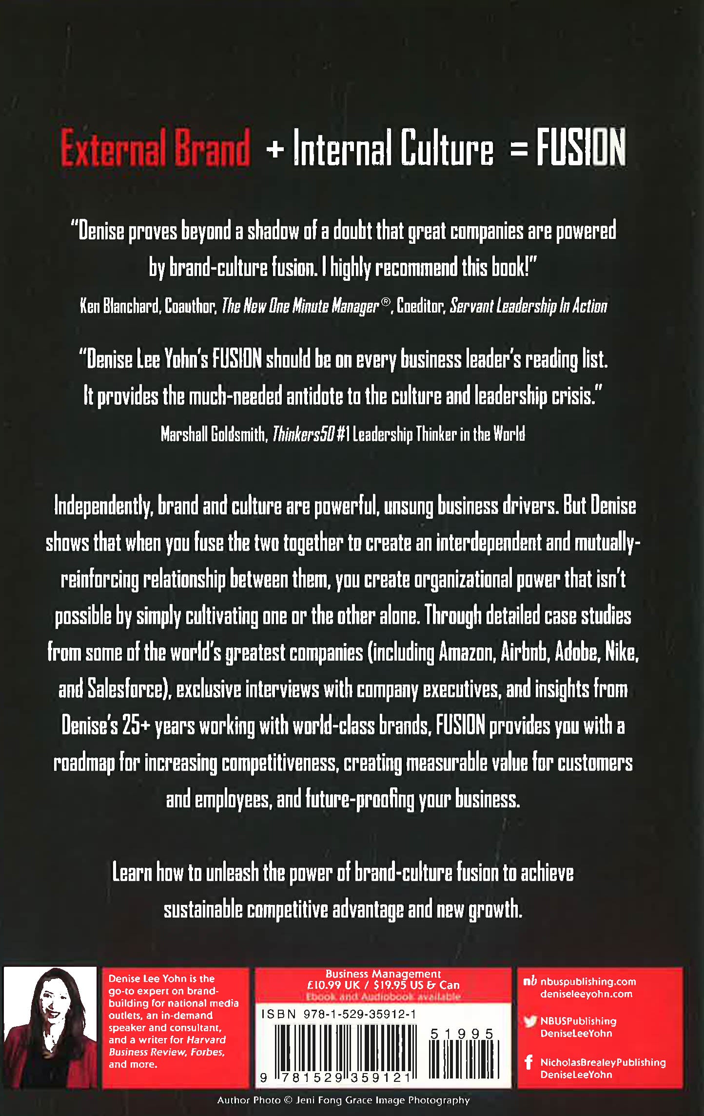Through detailed case studies, interviews with industry leaders, findings from respected academic research and drawing on her own experience working with extraordinary brands across a broad range of sectors, Denise shows how great companies achieve the brand-culture fusion that creates extraordinary results and growth. FUSION is for those with responsibility and oversight for the core operations of their business (C-Suite and line managers) who also set the tone and direction for their companies. The book includes access to Denise's proprietary online assessment for determining how close to or how far from brand/culture integration a company is and a blueprint for achieving brand-culture fusion.