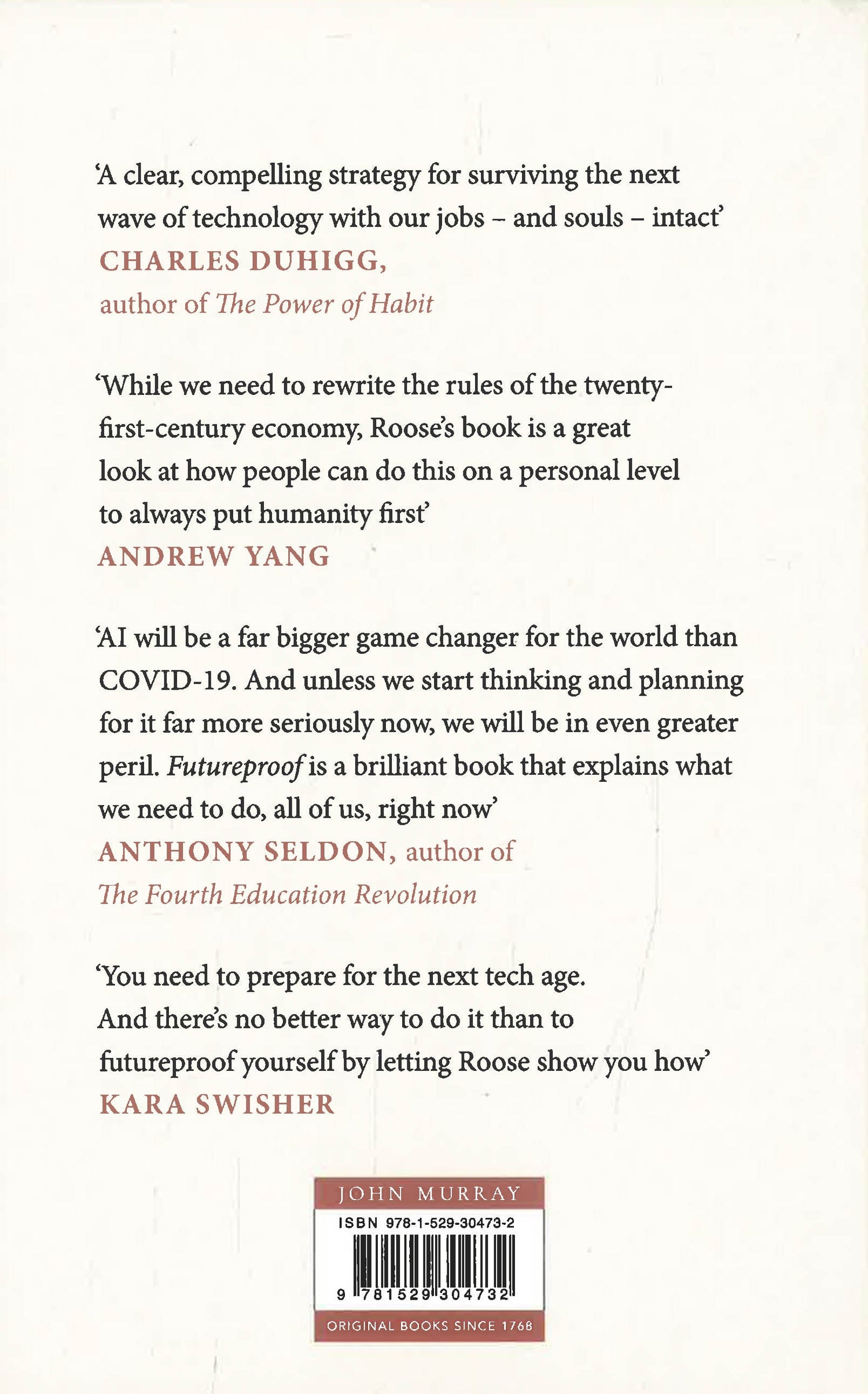 'Kevin Roose provides a clear, compelling strategy for surviving the next wave of technology with our jobs - and souls - intact... Futureproof is the survival guide you need' Charles Duhigg, The Power of Habit