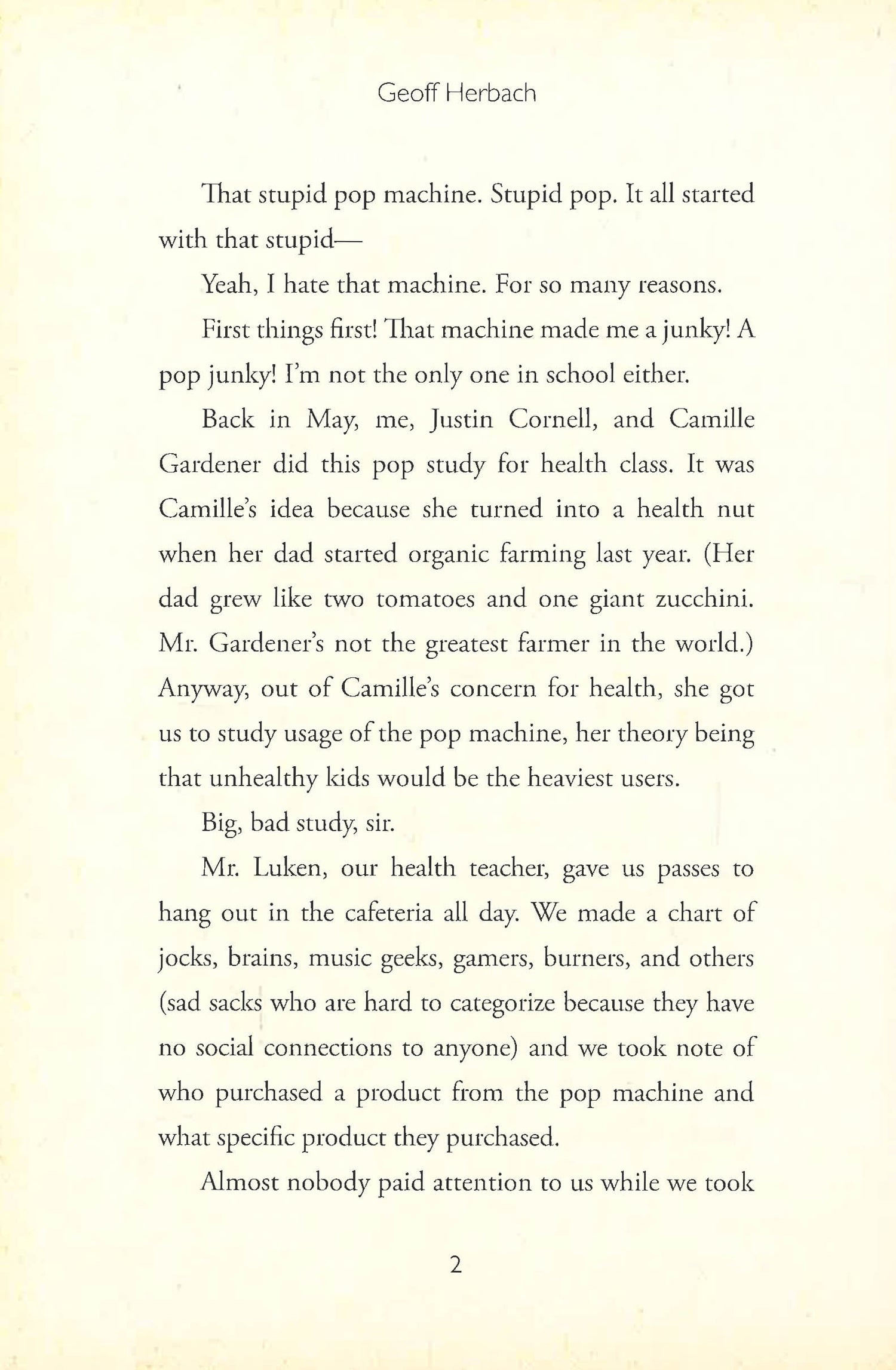 Gabe is having a tough week. Normally the funny kid at the lunch table, he's on edge from trying to kick his soda addiction. So when news breaks that his beloved marching band camp has been cancelled due to lack of funding, he's furious. What makes him even madder? The school's vending machine money-which had previously been collected by the band-is now sponsoring the new cheer squad.