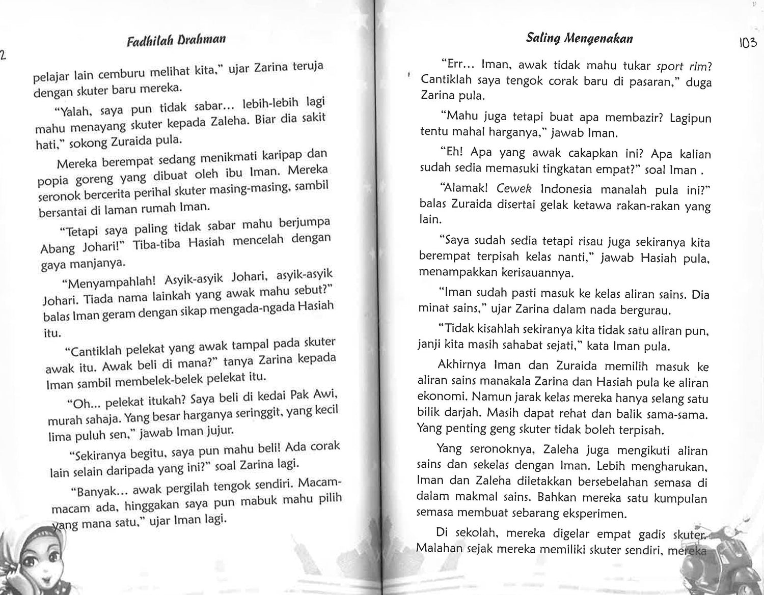Oh! skuter idaman hatiku! Iman meraba-raba skuter berwarna merah itu dan memeluknya beberapa kali. Gembira benar dia dihadiahkan skuter baru oleh abah dan uminya.