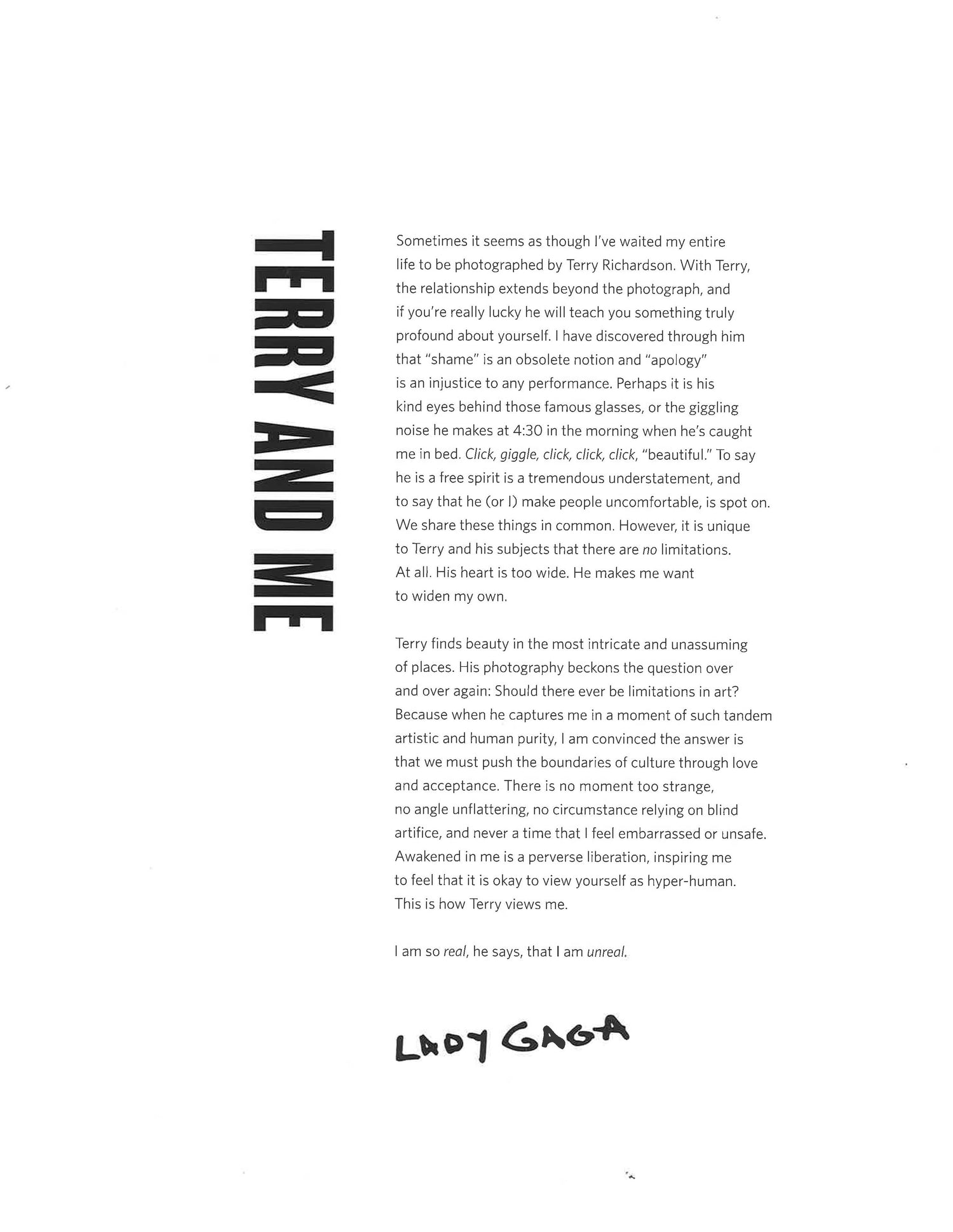 In this book of original, behind-the-scenes photographs, acclaimed photographer Terry Richardson follows superstar Lady Gaga during one year of her life, from Lollapalooza through the final show of her Monster Ball tour. During the time period he followed Gaga, Richardson took over 100,000 images and attended more than 30 Monster Ball dates around the world. From the 2010 MTV Video Music Awards to the Don't Ask, Don't Tell repeal rally in Portland, Maine, to the Thierry Mugler""show""at""Maxime," "Paris, Richardson captures Lady Gaga as you've never seen her before. A year-long global odyssey- -all access, nothing off limits--this is the book Lady Gaga fans have been waiting for.
