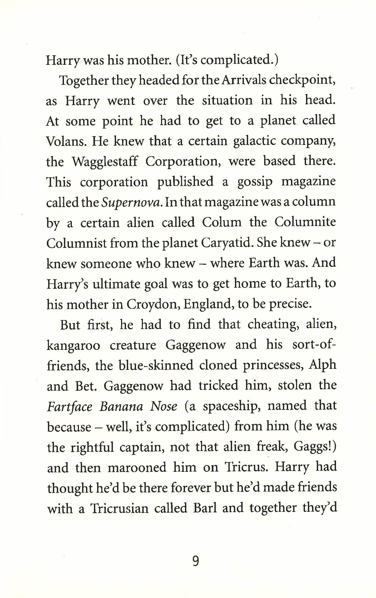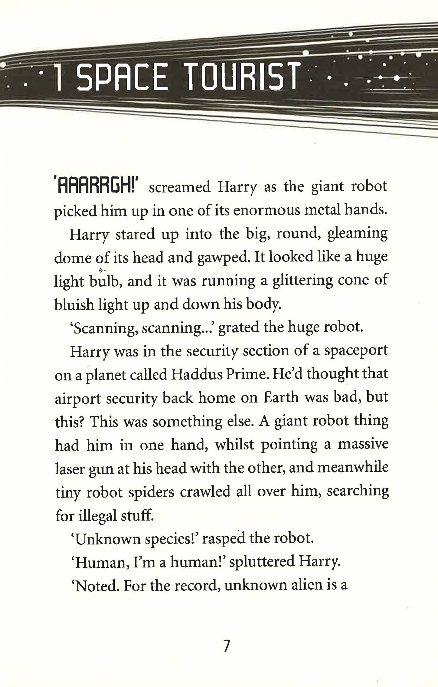 Harry was just an ordinary teenage boy from Croydon when he was abducted by aliens and accidentally became the captain of their starship. His quest to get back home to Earth continues - but now he's acquired an alien 'son' and a new spacecraft, and he's being pursued by an eight-foot robot bounty hunter... Could this be a galaxy too far for Harry? Another hilarious story from the Roald Dahl Funny Prize-winning author of the DARK LORD series.